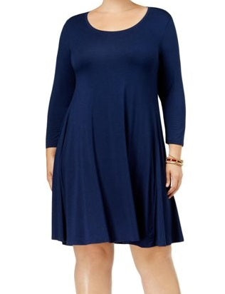 Style & Co Women's Plus Swing 3/4 Sleeves Casual Dress Blue Size 0X