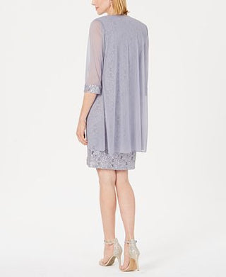 R & M Richards Women's Embellished Lace Sheath Dress & Jacket Gray Size 18