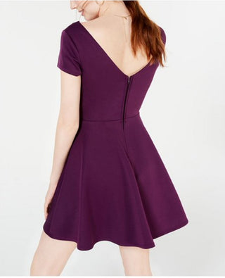 City Studios Women's Short Sleeve V Neck Above The Knee Fit Flare Dress Purple Size 7