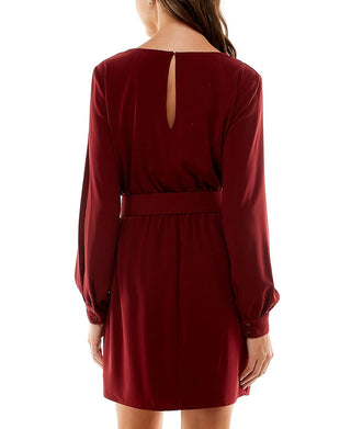 City Studios Junior's Draped Neck Belted Sheath Dress Red Size 13