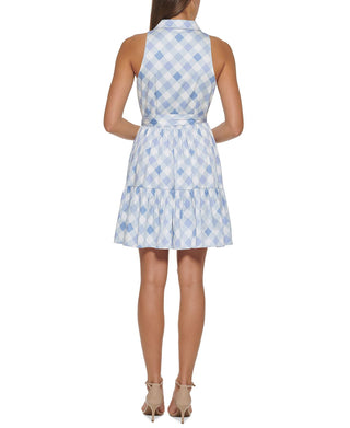 Tommy Hilfiger Women's Gingham Print Belted Dress Blue Size 4