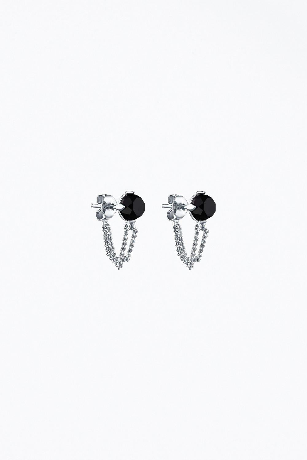 eye-catching earrings for every occasion.Handmade in Australia from sterling silver-plated metal, F+H Studios' 'Eva' earrings feature two chains affixed below a black onyx gemstone that wrap around the ear lobe. Wear yours alone or layered with other styles from the designer. Sold as a set for pierced ears.Dimensions: 50mm total dropDetails: Sterling silver-plated brass, black onyx gemstones, nickel-free