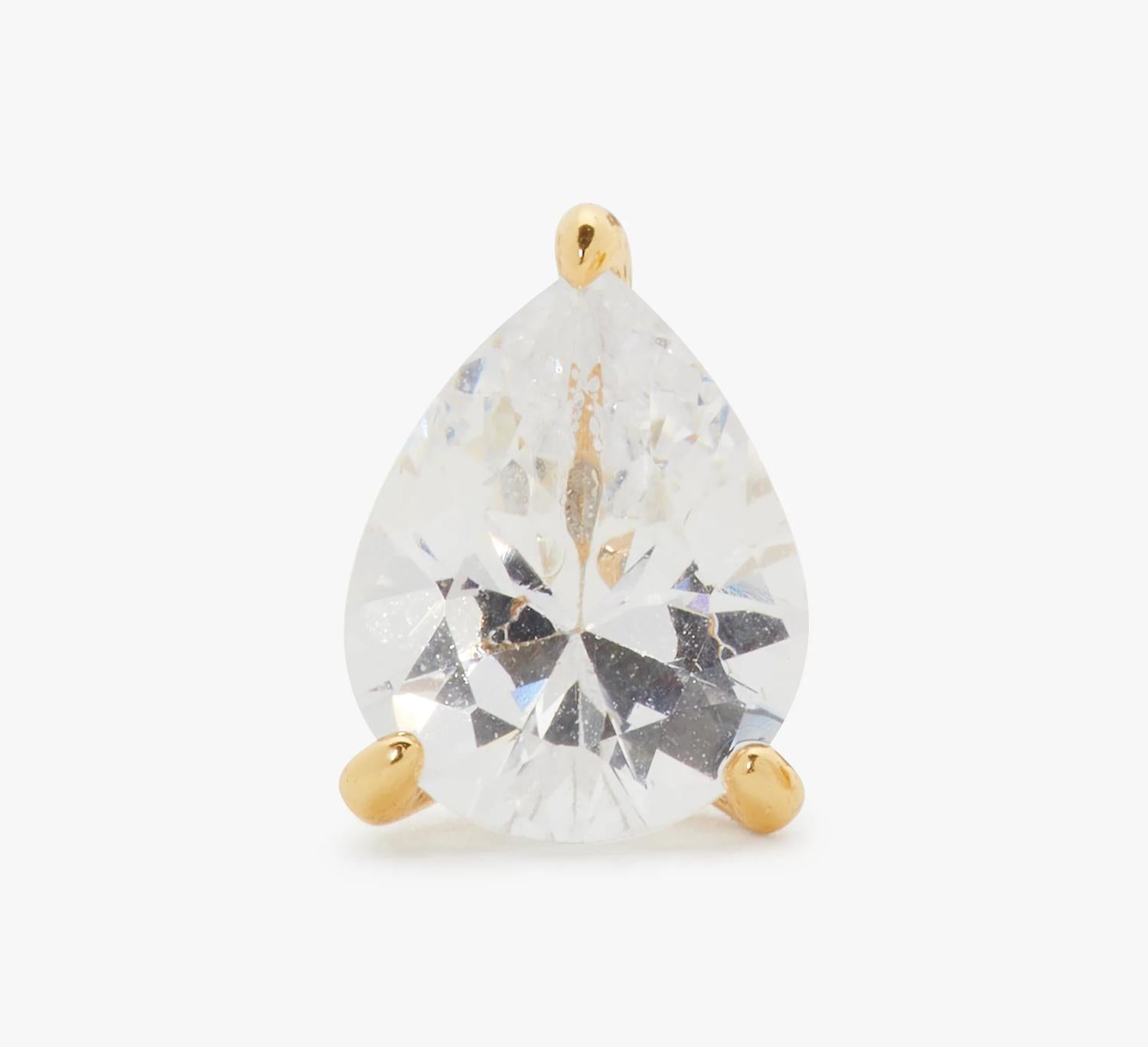 Classic earrings that will take you from season to season. Make a brilliant statement with the Kate Spade Brilliant Statement Studs, featuring dazzling pear-cut crystals in a striking clear and gold palette. Designed with lab-grown cubic zirconia, these earrings promise a touch of elegance perfect for any occasion. Closure is a secure post type, ensuring comfortable wear. Ideal for April birthdays with their diamond-like sparkle, these studs are a must-have for anyone seeking sophisticated style.