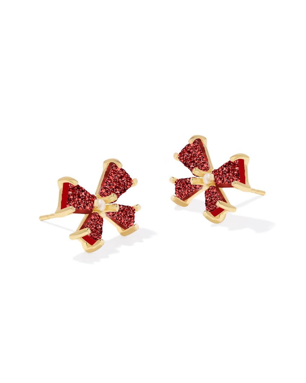 Classic earrings that will take you from season to season. Elevate your accessory collection with the Women's Blair Bow Small Stud Earrings by Kendra Scott. These sophisticated earrings feature a contemporary linear bow design in gold, adorned with dazzling red drusy stones. Made from quality brass, the earrings measure 0.64" in length and 0.46" in width, making them the perfect dainty addition to your ensemble. Ideal for adding a touch of elegance to your look, these earrings are a sweet and stylish choice for any occasion.