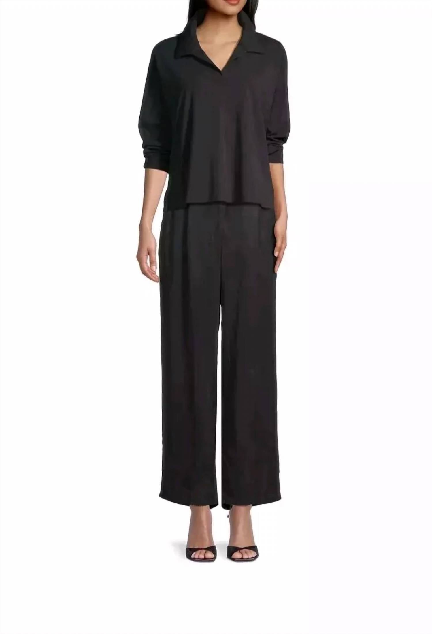Pair this with your favorite jeans and slides for your next girls night out. Crafted from a light cotton blend consisting of 93% cotton and 7% spandex, this top features long sleeves, drop shoulders, and a spread collar. Made in Peru with a convenient pull-on closure, it offers a comfortable fit while retaining a chic, minimalist look. For easy care, this blouse is machine washable and tumble dry friendly. Consider ordering a size down as the fit is slightly larger. Model is wearing a US size Small.