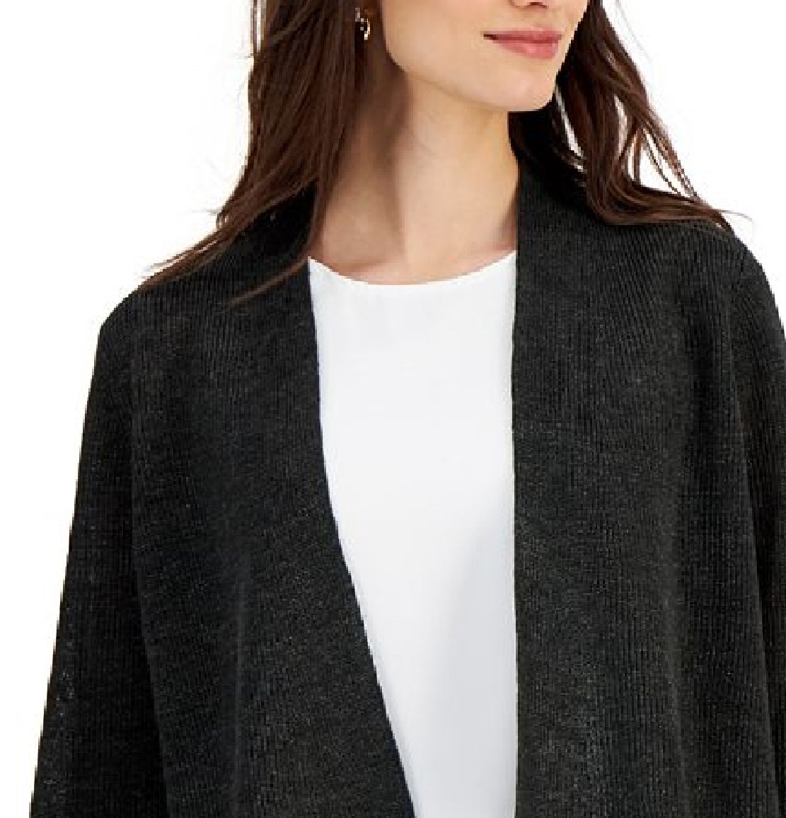 Lightweight| textural knit brings nuanced color to this Eileen Fisher cardigan| a versatile open-front piece in organic linen that breathes|