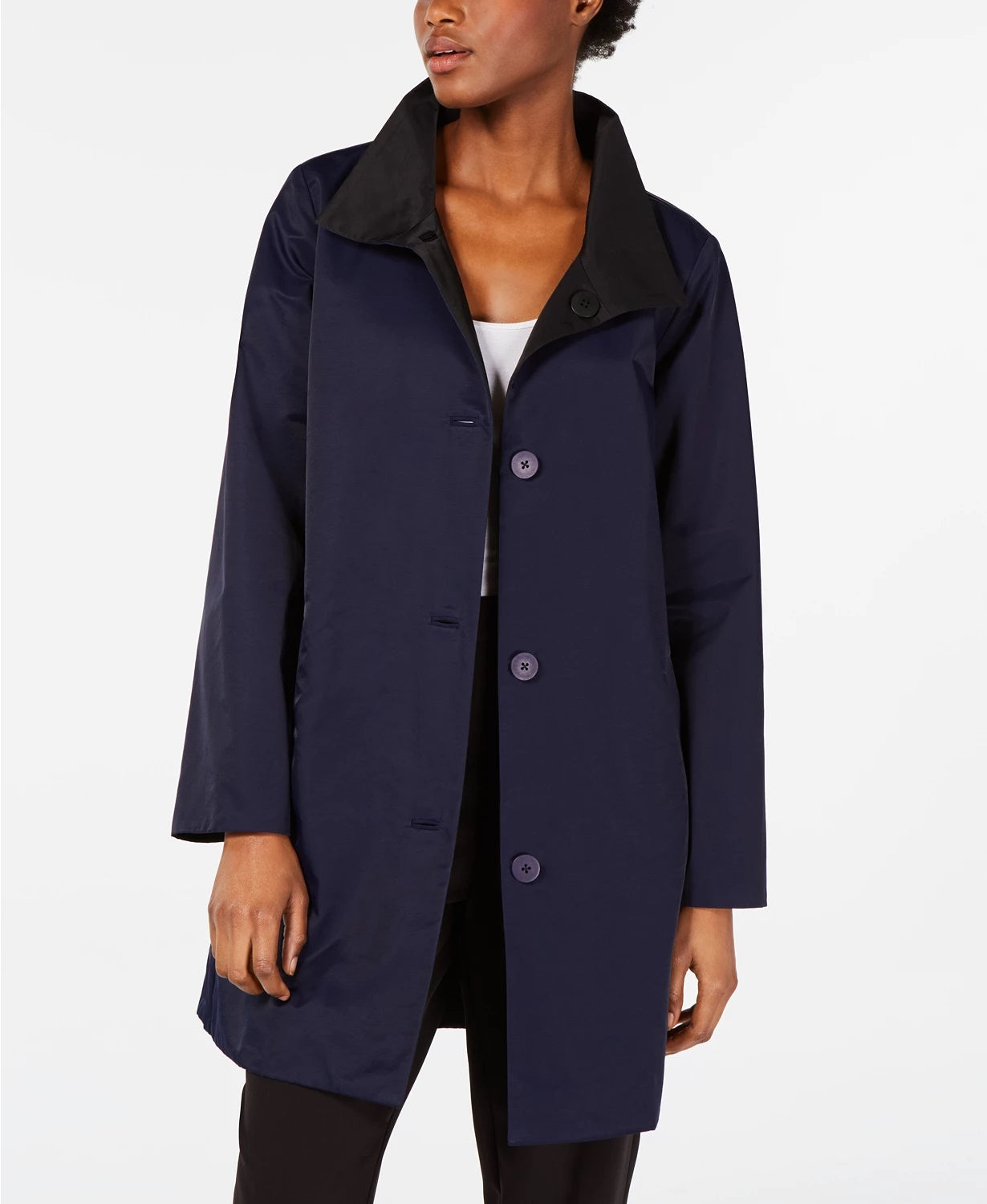 Approx. length: (R) 36" from center back to hem; (P) 32" from center back to hem|Stand collar; front button closures|Reversible styling|Hip pockets|Available in Regular & Petite sizes|Lined