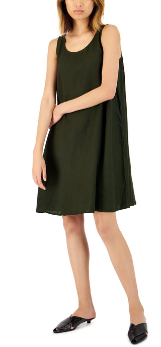 Eileen Fisher Women's Organic Linen Scoop Neck Dress Green Size X-Large
