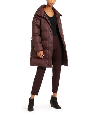 Eileen Fisher Women's Funnel Neck Down Coat Brown Size Petite Large