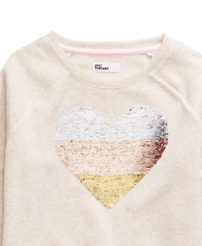 Scoop neckline|Sequined heart graphic at front|Polyester|Machine washable|Imported