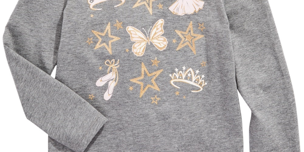 Epic Threads Kid's Little Girls Ballet Crown Long Sleeve T Shirt Gray Size 5