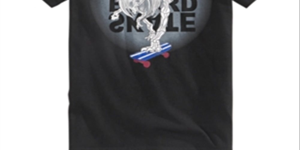 classic crewneck styling and a fun skateboarding dinosaur graphic make this skeleton skate t-shirt from epic threads the perfect trick for bringing a fun feel to his casual look