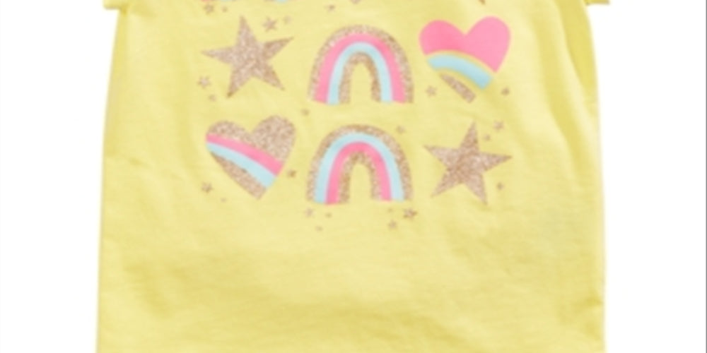 Scoop neckline| Rainbows| hearts and stars graphics at front| Cotton