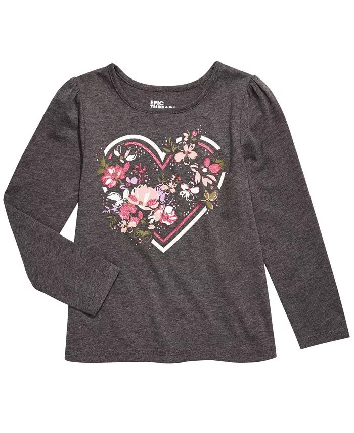 Epic Threads Toddler Girl's Heart Flower T-Shirt Gray Size 2T