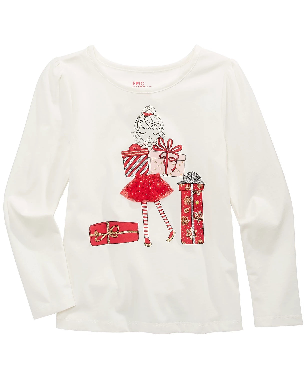 Scoop neck|Graphic print at front; glitter tulle appliqué at front|Cotton/polyester|Machine washable|Imported