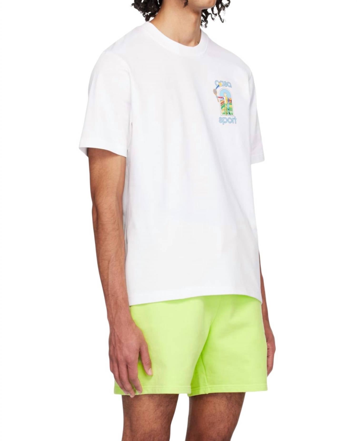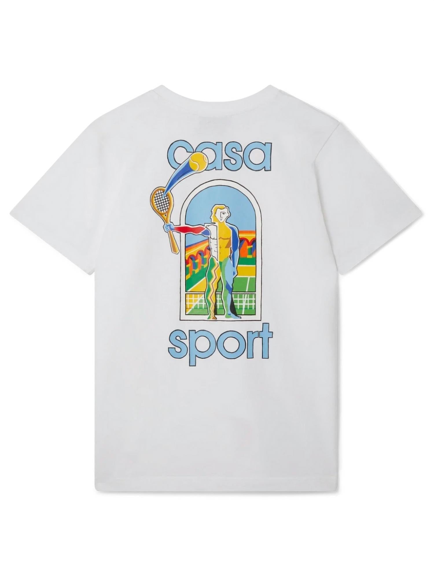 Discover the Le Jeu Coloré Graphic T-shirt by Casablanca, a striking piece that embodies the vibrant essence of Afro-Cubism artistry. This unisex short sleeve design is skillfully crafted from 100% organic cotton and features graphic prints on the front and back, adding an artistic flair to your summer wardrobe. Made in Portugal, the t-shirt is styled with a rib knit crewneck for a comfortable fit and features a pull-on closure. Easy to maintain, simply machine wash on a delicate cycle.