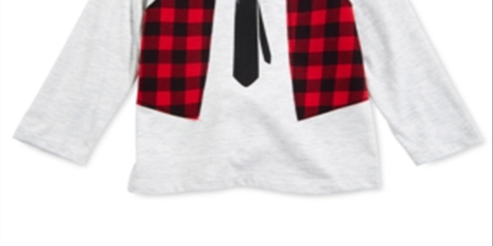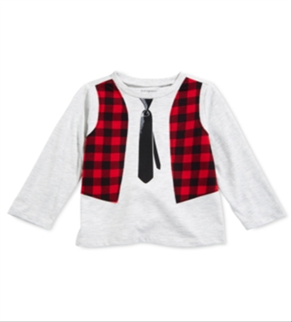 First Impressions gives him a fun look with this long-sleeved graphic-print T-shirt featuring the look of a vest and tie
