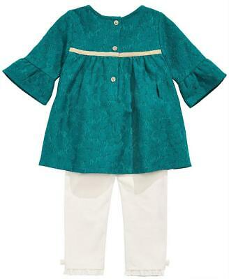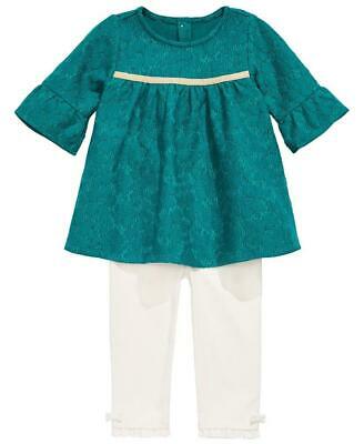 First Impressions Baby Girl's 2 Pc Lace Tunic & Ruffle Leggings Set Green Size 6-9MOS