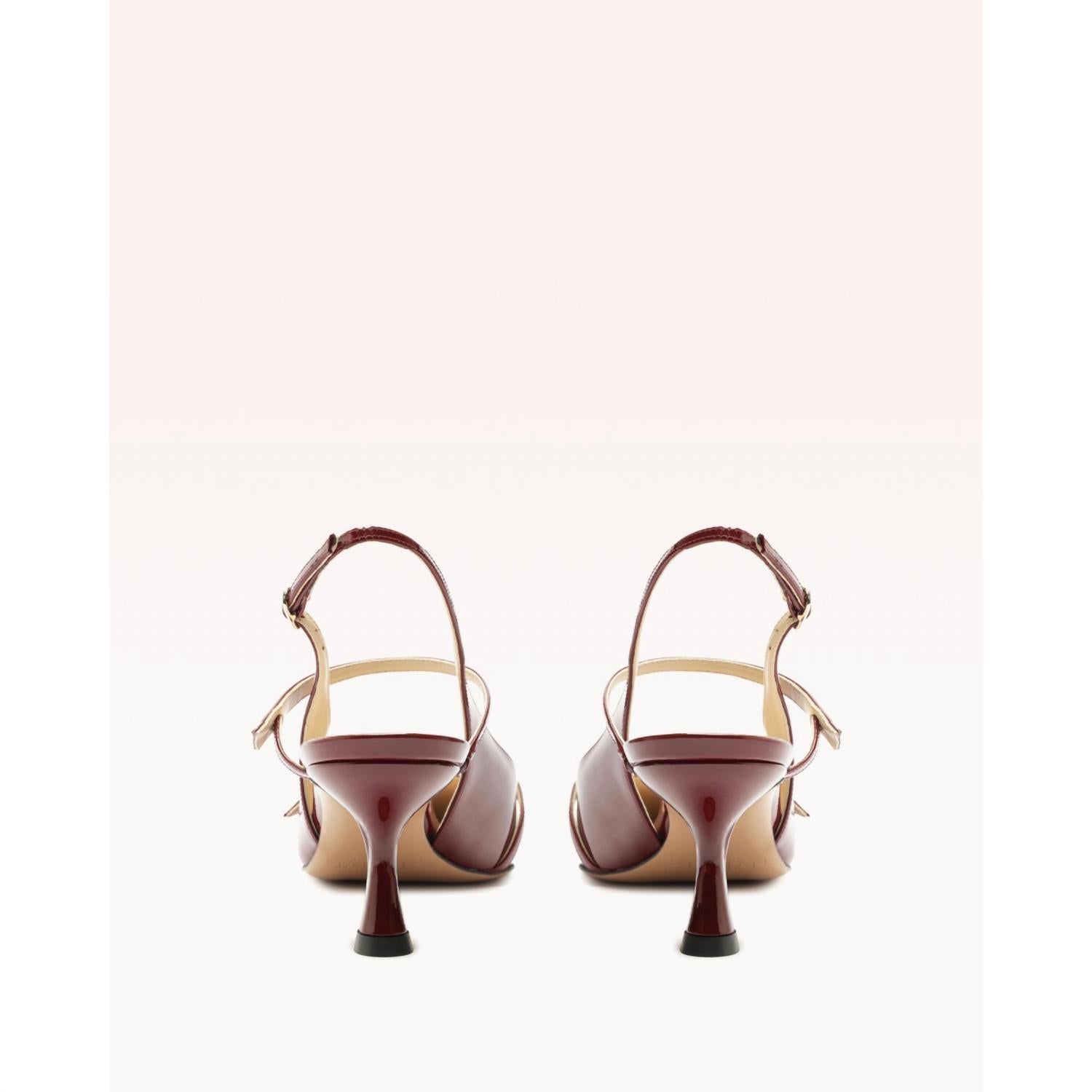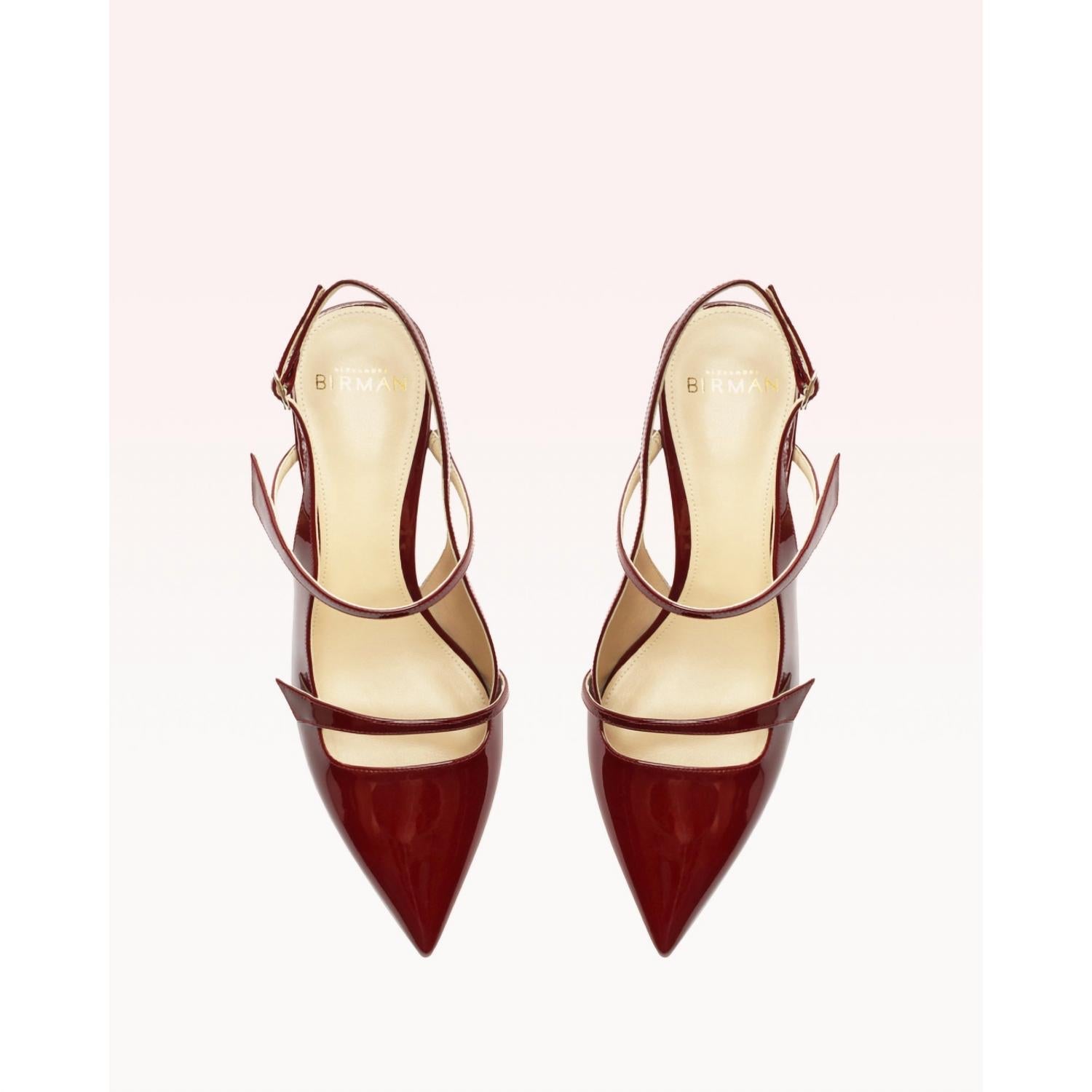 Step into elegance with the Women's Tita Slingback Heels by Alexandre Birman in a striking Cherry Red. These medium-width heels showcase a pointed toe and a stiletto heel style, with a heel height of 2.4 inches (60mm), perfect for engagements or Thanksgiving gatherings. Crafted from vernice leather, they combine modern flair with a touch of 90s fashion nostalgia, making them ideal for spring occasions. The leather sole and timeless silhouette ensure both comfort and style in every step.