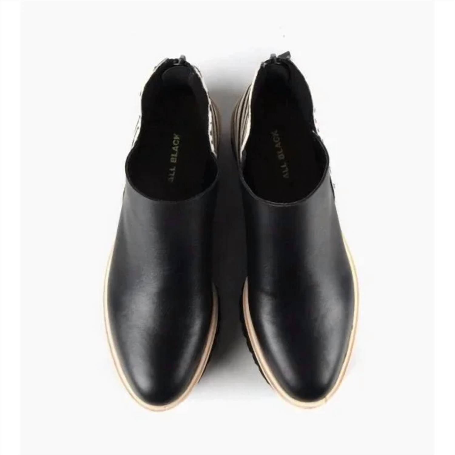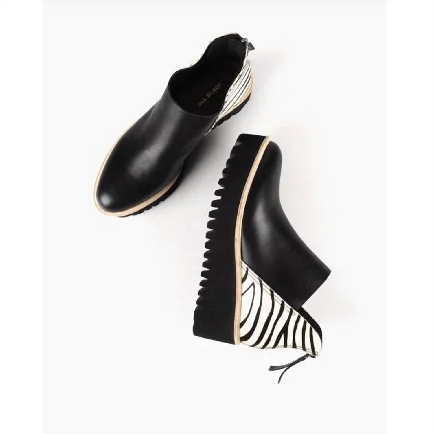 All Black Women’s Flatform Jungle Tread Booties Black Zebra Size 10mFlatform shoe with low ankle and patterned haircalf detail and lugg inspired, two-tone outside