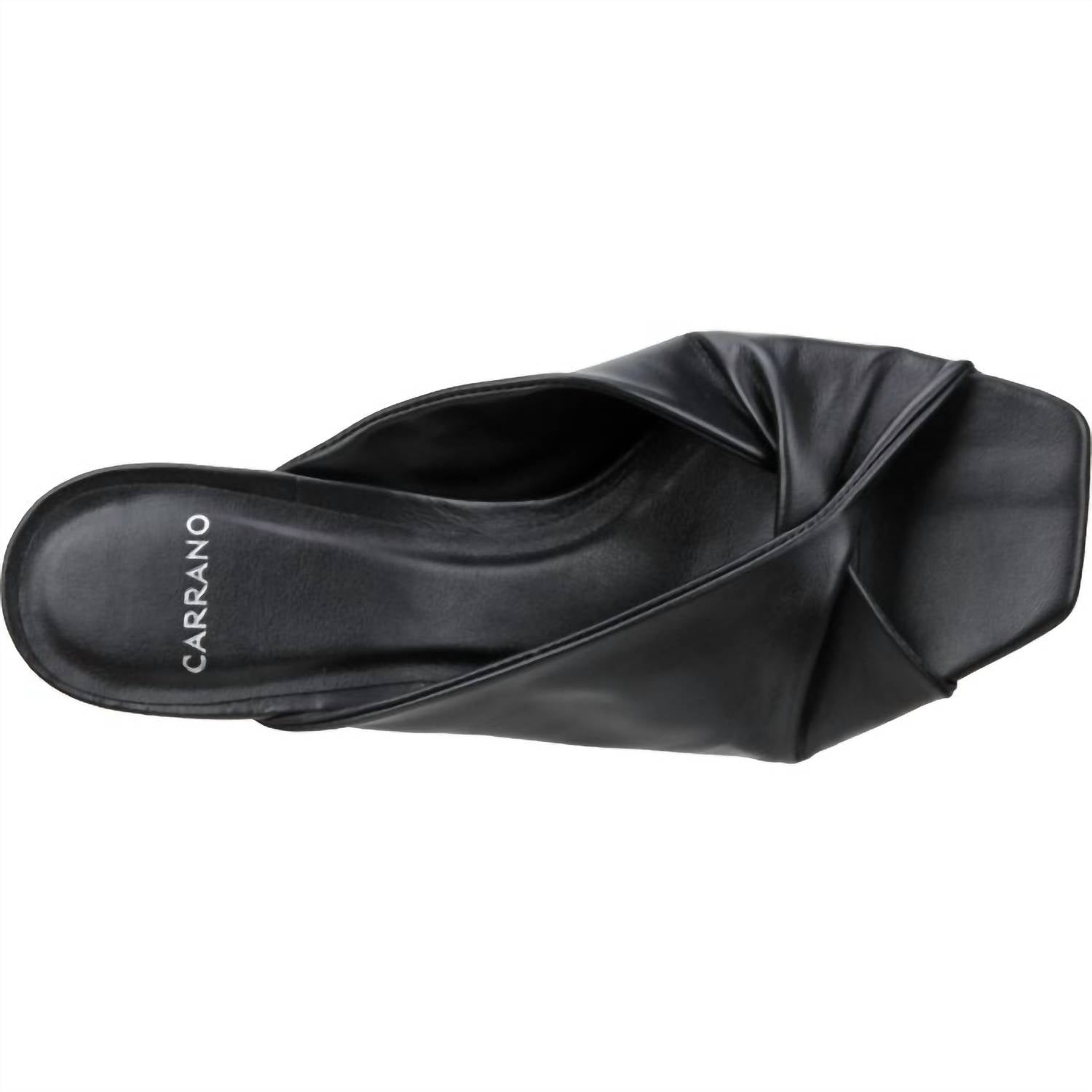 This slip-on heels features a leather upper with a 2.5" leather-covered heel and a square toeline. It is leather-lined and has a rubber sole for added comfort and durability. Made in Brazil.