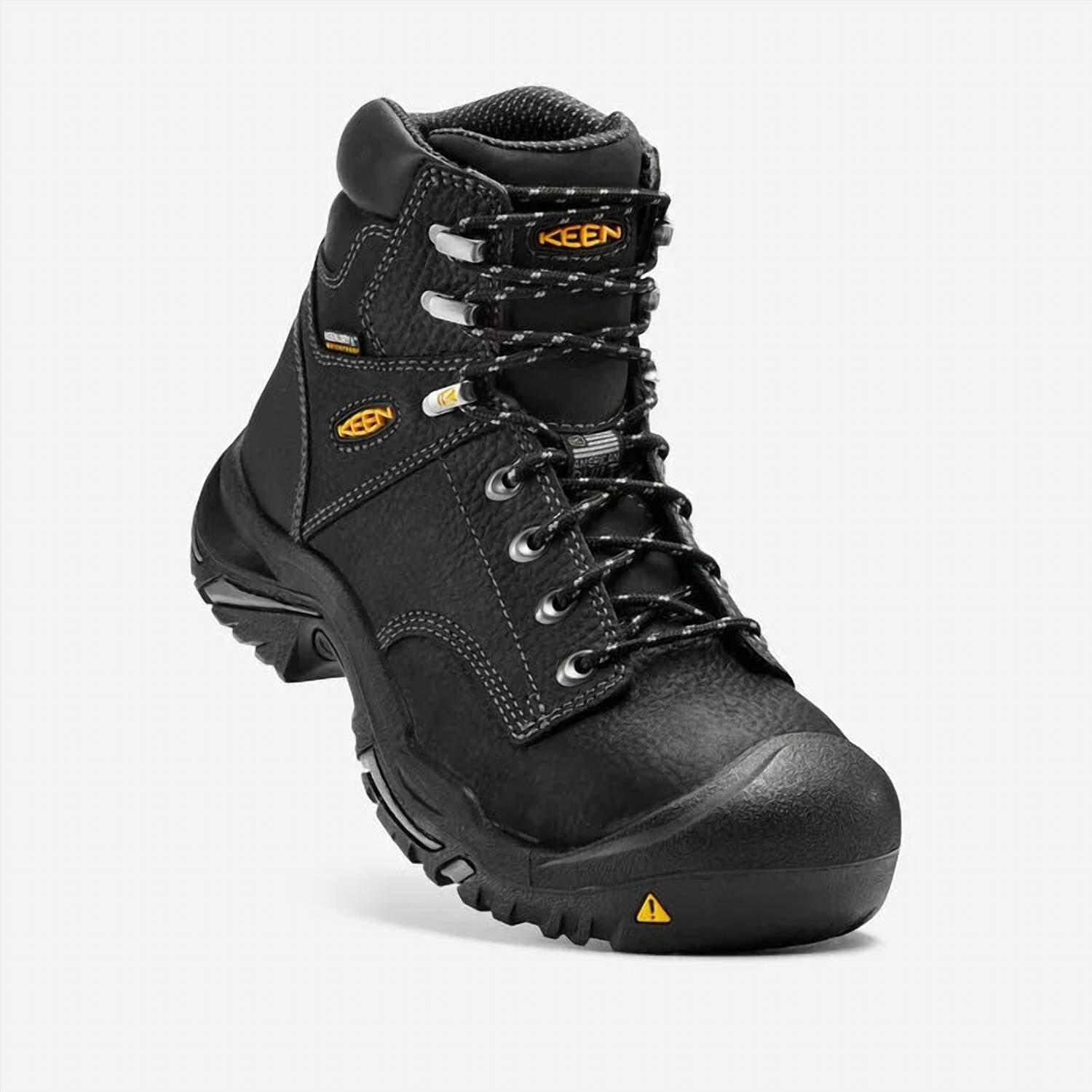 Your best bet for medium to heavy-duty jobs. This work boot is waterproof, and the non-slip sole stands up to the slickest work sites. The resilient, shock-absorbing midsole provides comfort that doesn't quit. KEEN.Dry waterproof breathable membrane TPU shank for midfoot support Cleansport NXT for natural odor control Locking metal hooks and lacing eyelets Heat resistant, rubber outsole up to 572° F / 300° C Waterproof leather upper Water Proof Oil and slip resistant non-marking rubber outsole Direct attach PU midsole for long-lasting comfort Lining with hydrophobic/hydrophilic 2-zone comfort technology Removable, metatomical dual-density EVA footbed Oil and slip resistant outsoles that meet or exceed ASTM F2413-17 SATRA & MARK II F1677-96 non-slip testing standards. Weight: 29.4oz / 833.5g Meets ASTM F1677-96 MARK II Non-Slip Testing Standards Meets ASTM F2913-17 SATRA Non-Slip Testing Standards Meets ASTM F2412-18 and F2413-18 M I/75 C/75 EH standards Toe Type: Steel Toe Duty Type: Medium Duty Certified Slip Resistant (Mark II) Assembled with pride in Portland, Oregon