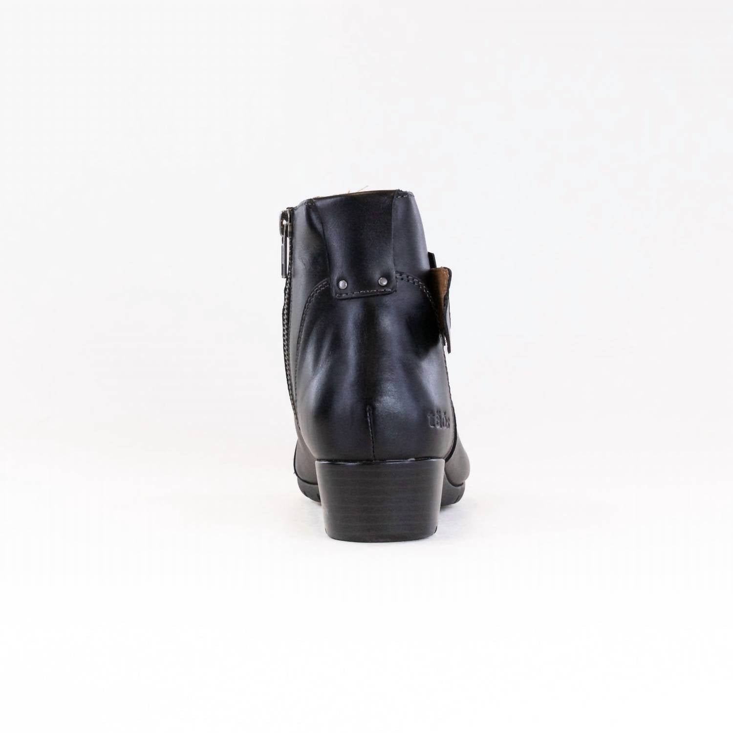 Say hello to the perfect, most versatile boot. The ankle height makes this style easily transition from day to night. Wear them with your favorite skinny jeans and tee for a more laid back look, or pair them with your favorite mini dress and jacket for a night out on the town. Step into sophistication with the Women's Gazette Boot by täos in full-grain black leather. This stylish ankle bootie offers a convenient inside YKK zipper closure, and an elegant block heel at a height of 1 1/4 inches, perfect for a chic yet casual look. It's built for comfort with a Curves & Pods removable footbed featuring arch and metatarsal support, along with a shock-absorbing rubber outsole. Crafted with a leather upper and lining and a polyurethane and suede covered insole, this imported boot combines durability with timeless style. Measurements for size 8.5 include a shaft height of 5 1/2 inches and a weight of 14 oz, though dimensions may vary.