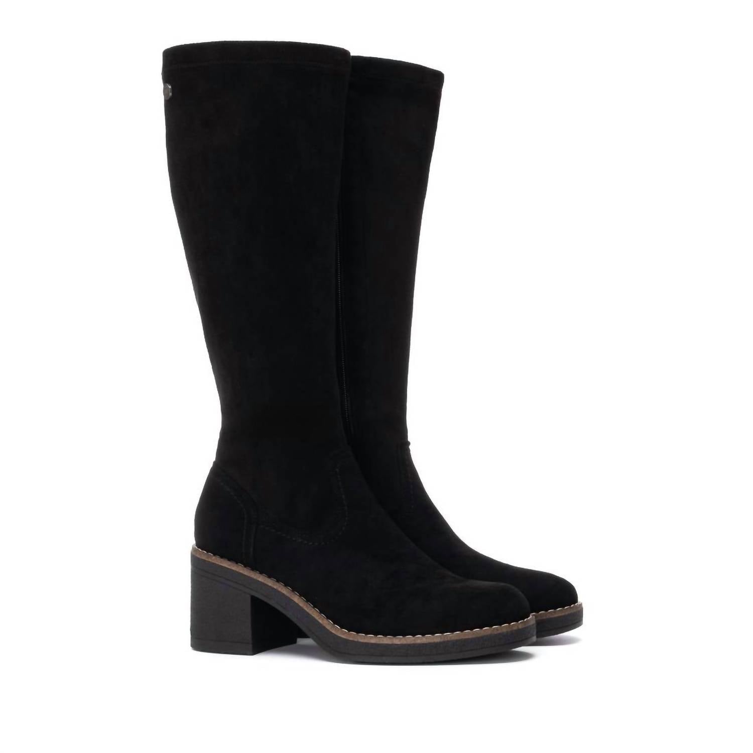 Embrace elegance and comfort with the Women's Refresh Boots by Xti, perfect for those holiday parties. These medium-width, black boots are crafted from premium leather, featuring a stylish block heel and a classic round toe shape that complements any winter attire. Ideal for adult women, they seamlessly blend style with functionality. Elevate your winter wardrobe with these expertly crafted boots designed for a memorable season.