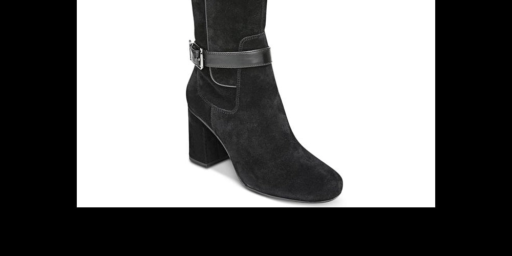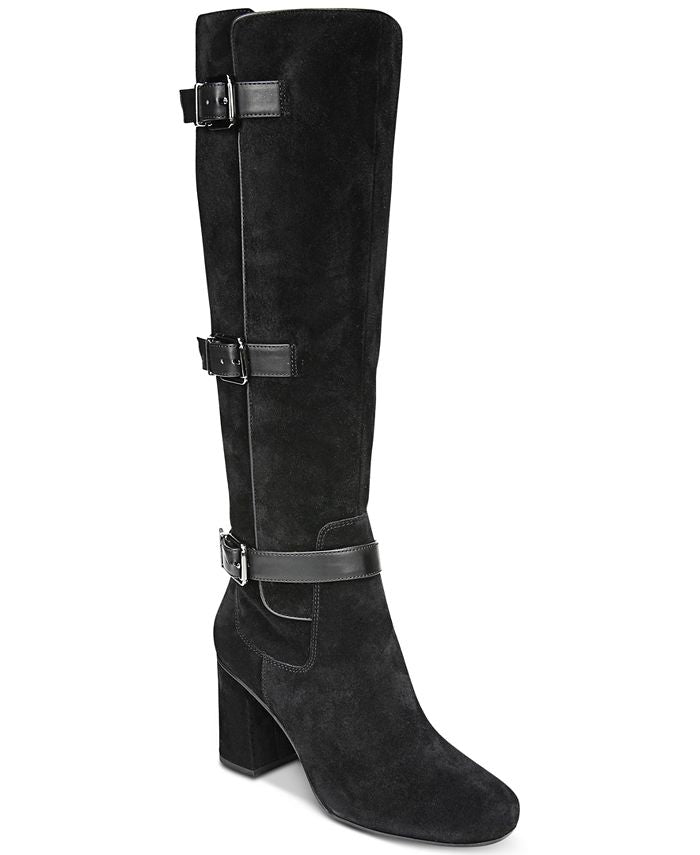 Buckled straps adorn the leg-lengthening profile of Franco Sarto's Knoll dress boots for a look to love in everything from skinny jeans to skirts and leggings.| 3 heel | Round-toe dress boots| Zipper closure at inner ankle; buckled strap details at shaft| Shaft; 15-1/4 height| 14 circumference| Please note; Shaft height and circumference will vary by size.