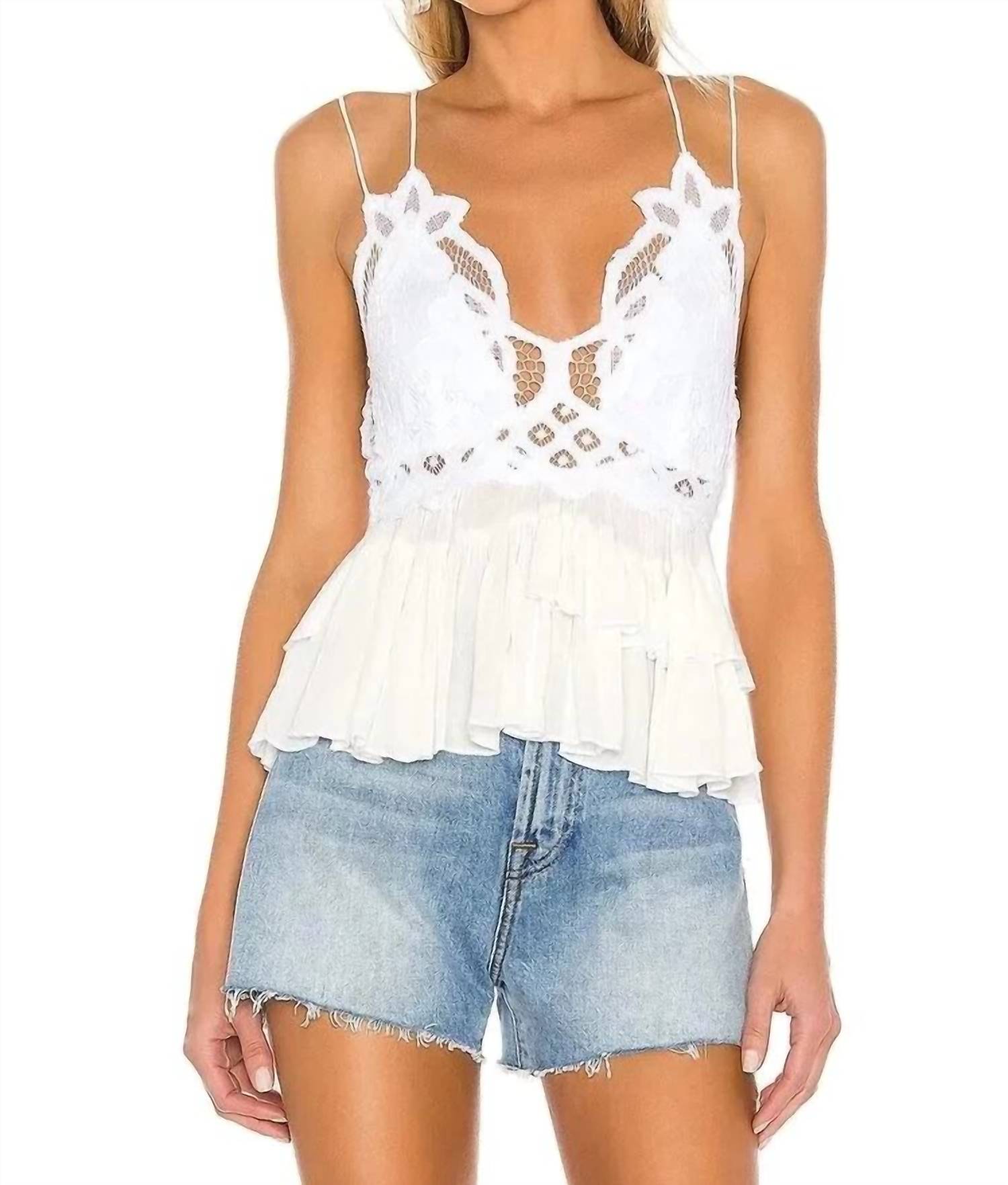 Throw this on with your favorite blazer for a more polished look. Infuse your wardrobe with boho-chic romance through the Adella Cami Top by Free People. Designed with delicate spaghetti straps and a deep V-neck, this piece enchants with flowy, tiered ruffles at the hem. Crafted in a viscose blend, the top boasts an 11.4" center front length and is partially lined for a flattering fit. With a convenient pull-on style, this imported cami requires gentle care, recommending hand wash and flat drying to maintain its exquisite texture. 69% viscose, 19% nylon, 12% cotton.