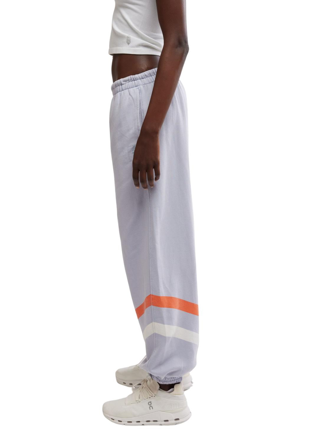 No gym necessary for these cool-girl joggers. Introducing the All Star Mid-rise Pant by Free People in a chic Steel Sport hue, designed for effortless athleisure style. Crafted with a slouchy, relaxed fit, these sweatpants feature a soft fabrication, an oversized logo, and a practical smocked elastic waistband with an adjustable drawstring. The design includes convenient hand pockets and cinched bottom hems for a tapered leg silhouette, making it an ideal activewear choice for your summer fitness routine. Perfect for the woman on the go, the button closure adds a subtle touch of functionality.