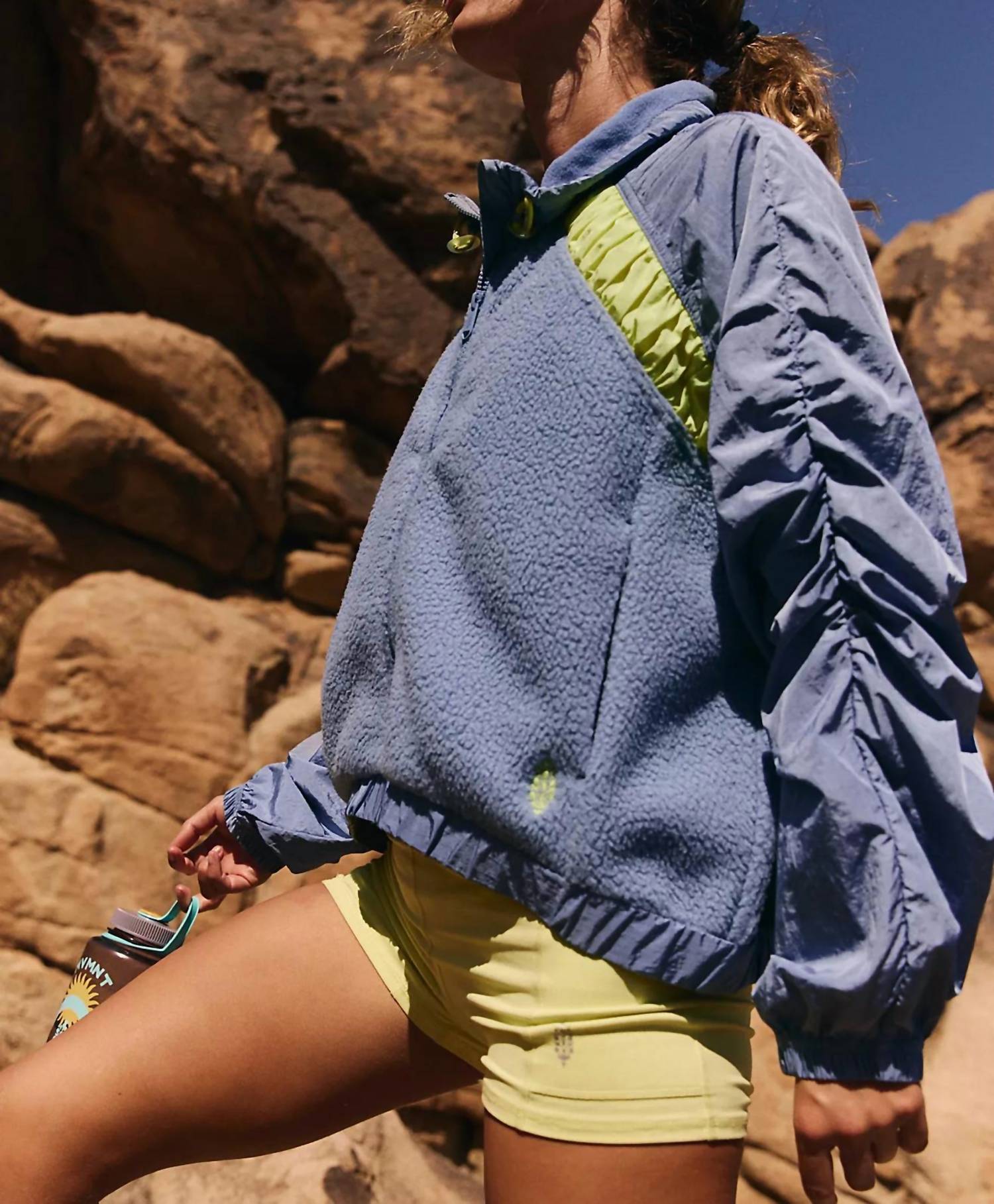 Downright adorable and so comfortable you won't want to take it off. This teddy jacket is a fan favorite. Elevate your athleisure game. Expertly crafted for women in a chic blue grey hue. Made from durable 100% nylon. Featuring a waist-length design measuring 21.25 inches for a sleek silhouette. Designed without compromising warmth or style, it boasts a fleece bodice, elasticated cuffs, contrast color detailing, and a bungee adjustable high neck collar. Enjoy the convenience of zippered side hand pockets and a zip closure. Machine washing ensures easy care.