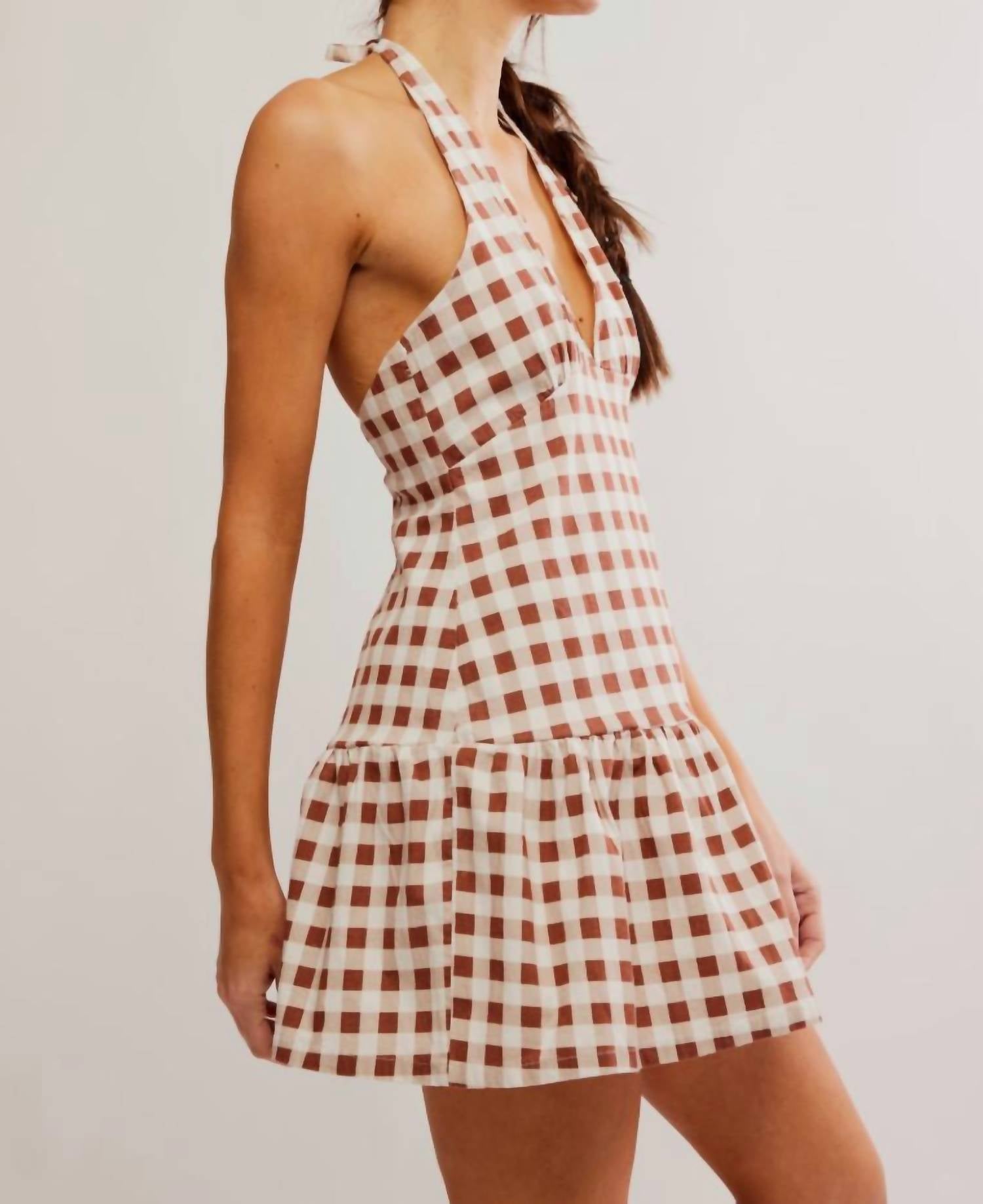 The kind of easy and flattering dress you'll be reaching for all season long. Introducing the Cecil Mini Dress by Free People, a captivating red ensemble perfect for evening events. The sleeveless design features halter straps that tie at the back, an elegant plunge v-neck, and an open back for a striking appearance. Crafted from a blend of 60% cotton, 19% rayon, 19% linen, and 2% spandex, this dress boasts an empire waist with a ruffled flounce at the skirt for a preppy, fit and flare silhouette. Made in India with a back zip closure and designed for a mini length with an approximate length of 34" based on a size small, it fits true to size. Care instructions: Machine wash. Model is 5'10" with measurements of 33" bust, 25" waist, 35" hips, wearing a size small.