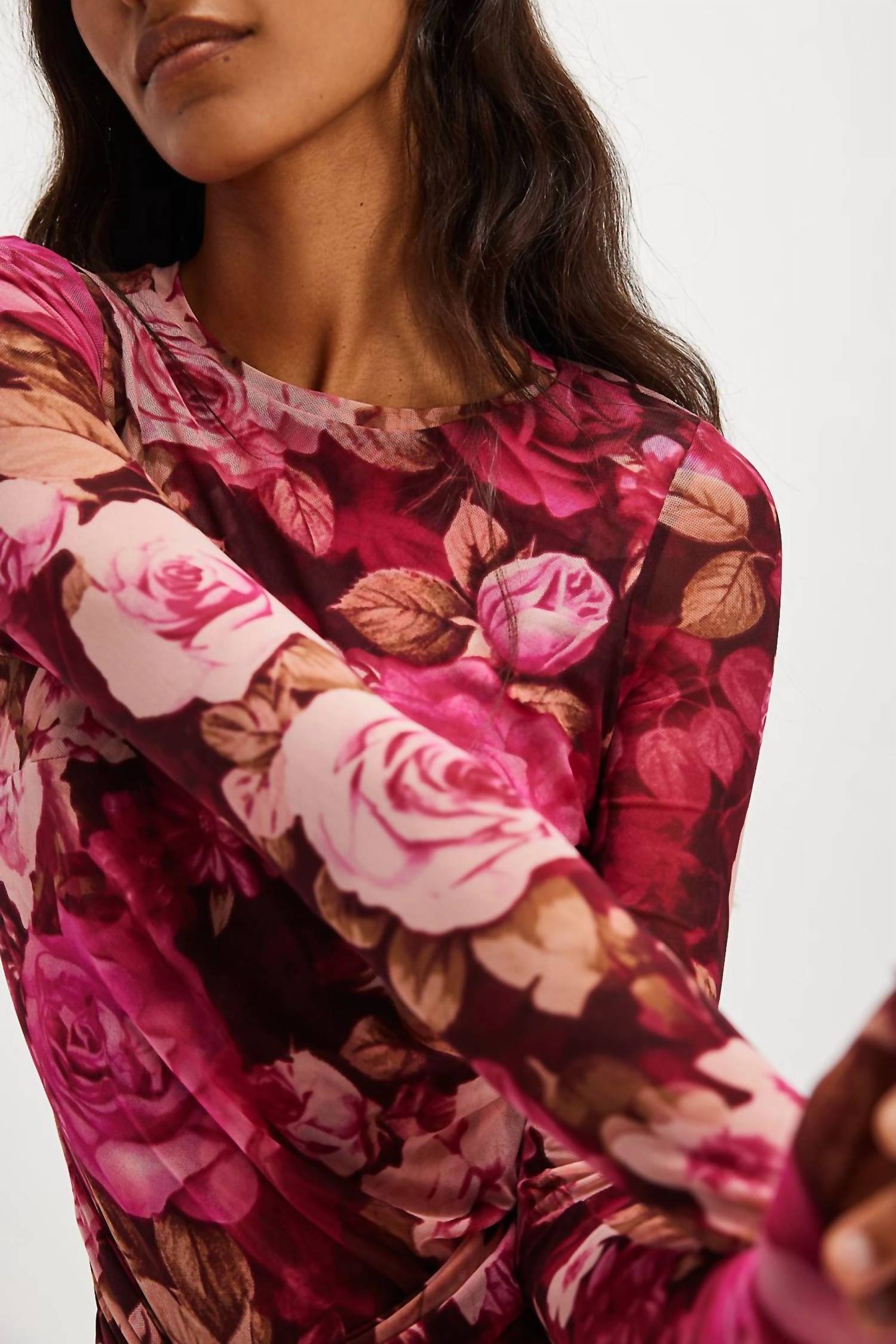 Style this maxi with your favorite statement necklace and sandals for the perfect look. Introducing the Gianni Maxi by Free People, a stunning long-sleeve dress perfect for the contemporary bohemian spirit. Crafted from a 95% Nylon and 5% Elastane blend, this Love Combo maxi dress features a bold floral print, a crewneck design, and a flattering A-line hem with a dramatic leg slit. Closure is pull-on style, enhancing its comfortable and stretchy mesh fabrication. Care for this piece is simple with machine wash instructions, making it an ideal choice for summer occasions like Valentine's Day or birthdays.