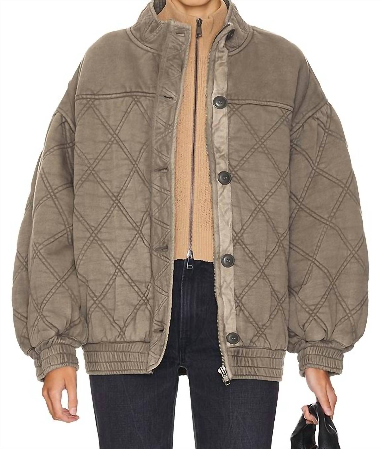 Cozy, cute and timeless. The puffer jacket that will keep you warm all season long. Presenting the Juno Jacket by Free People, a stylish addition to your puffer collection in a muted Laurel Oak hue. This patterned jacket boasts long sleeves and is crafted with a shell and lining of 100% cotton, filled with 100% polyester for warmth. Made in India, it features a stand collar with dropped shoulders, elastic stretch at the cuffs and waist, and convenient side slit pockets. The front button closure ensures easy wear, while care is kept simple with a machine wash cold.