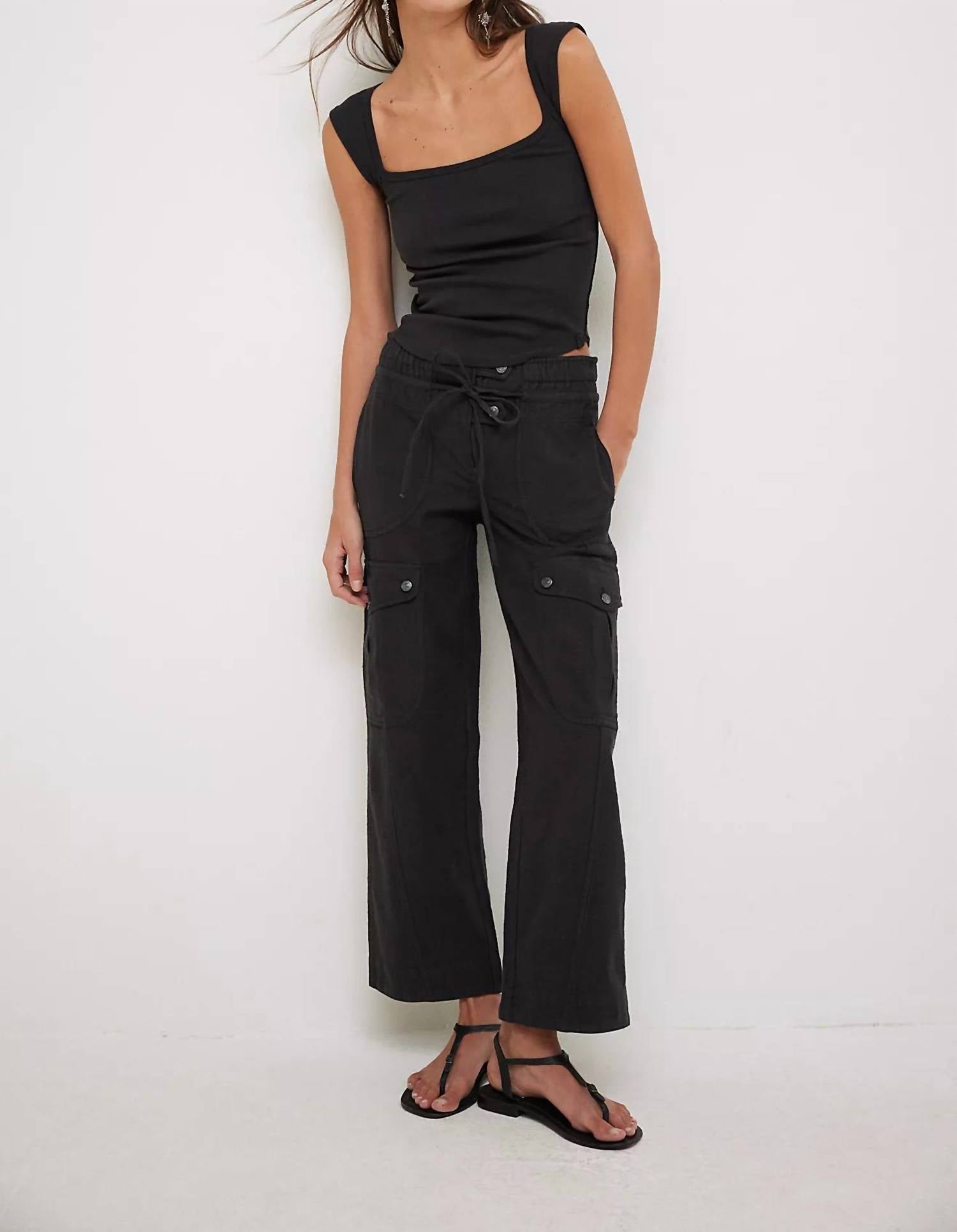 Discover the Park Ave Pants by Free People, a modern twist on a timeless classic. These high-rise pants are crafted from 100% cotton and offer a fitted style with a slight flare at the bottom and essential pocket detailing, delivering a utility-inspired touch. Featuring an elasticated drawstring waistband and a slim fit throughout, they are as versatile as stylish, perfect for dressing up or down. Care is simple with machine wash cold, and they come in solid black with inseam measurement of 29 inches and rise of 10.5 inches, making them a go-to for any occasion.