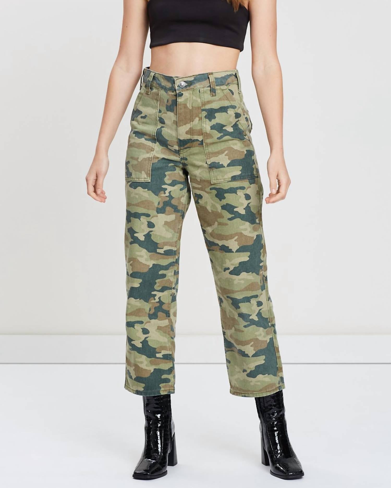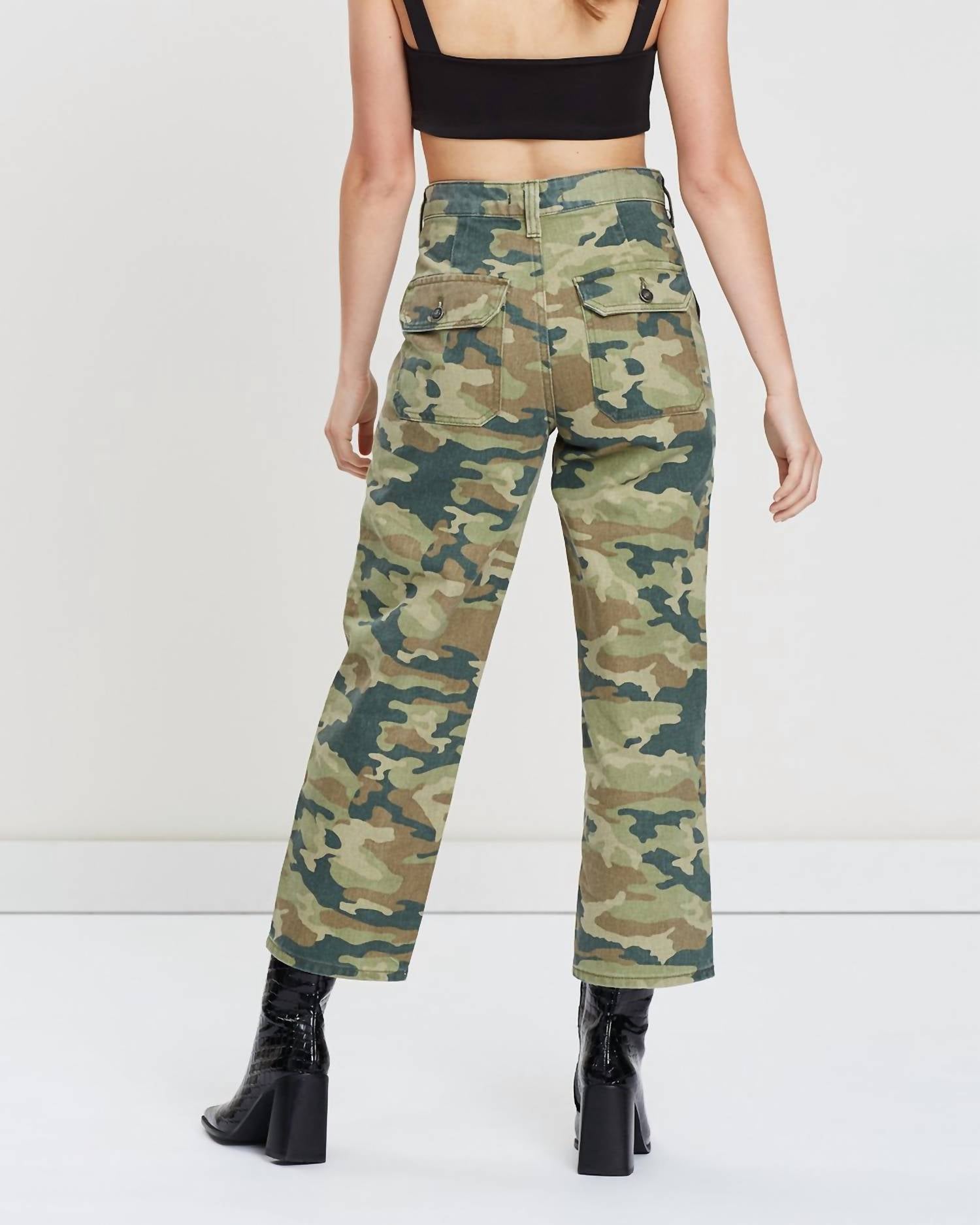 Elevate your casual wardrobe with the Remy Cropped Pants by Free People, featuring a contemporary camouflage pattern. Crafted entirely from 100% cotton, these stylish cropped pants boast a slimming straight leg design with a flattering high rise. With a 25-inch inseam and a 12.5-inch front rise, they offer a perfect fit complemented by utility pockets and a zip fly with button closure. Easy to care for, these pants are machine washable and can be tumble dried, adding convenience to your chic ensemble. Imported for quality assurance.