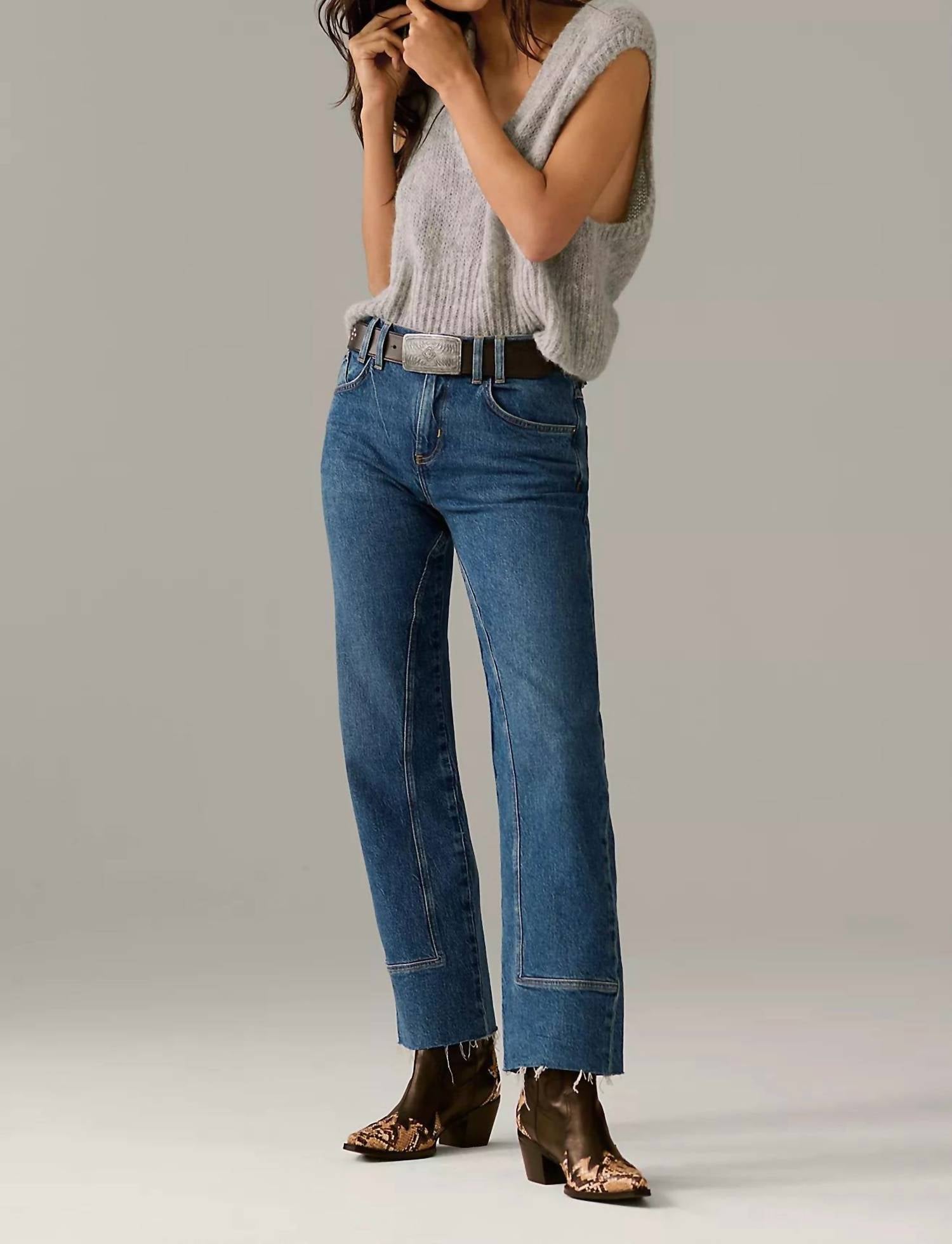 Discover the Risk Taker Mid Rise Straight Jeans by Free People, a stylish choice in a bold sapphire hue. Designed for women, these solid-patterned jeans feature a mid-rise waist and relaxed fit with a true straight leg silhouette. Made from a comfortable cotton blend, they include a practical five-pocket design and a zip fly with a button closure. Crafted to the ankle length, care for these jeans is hassle-free with machine wash instructions recommended.