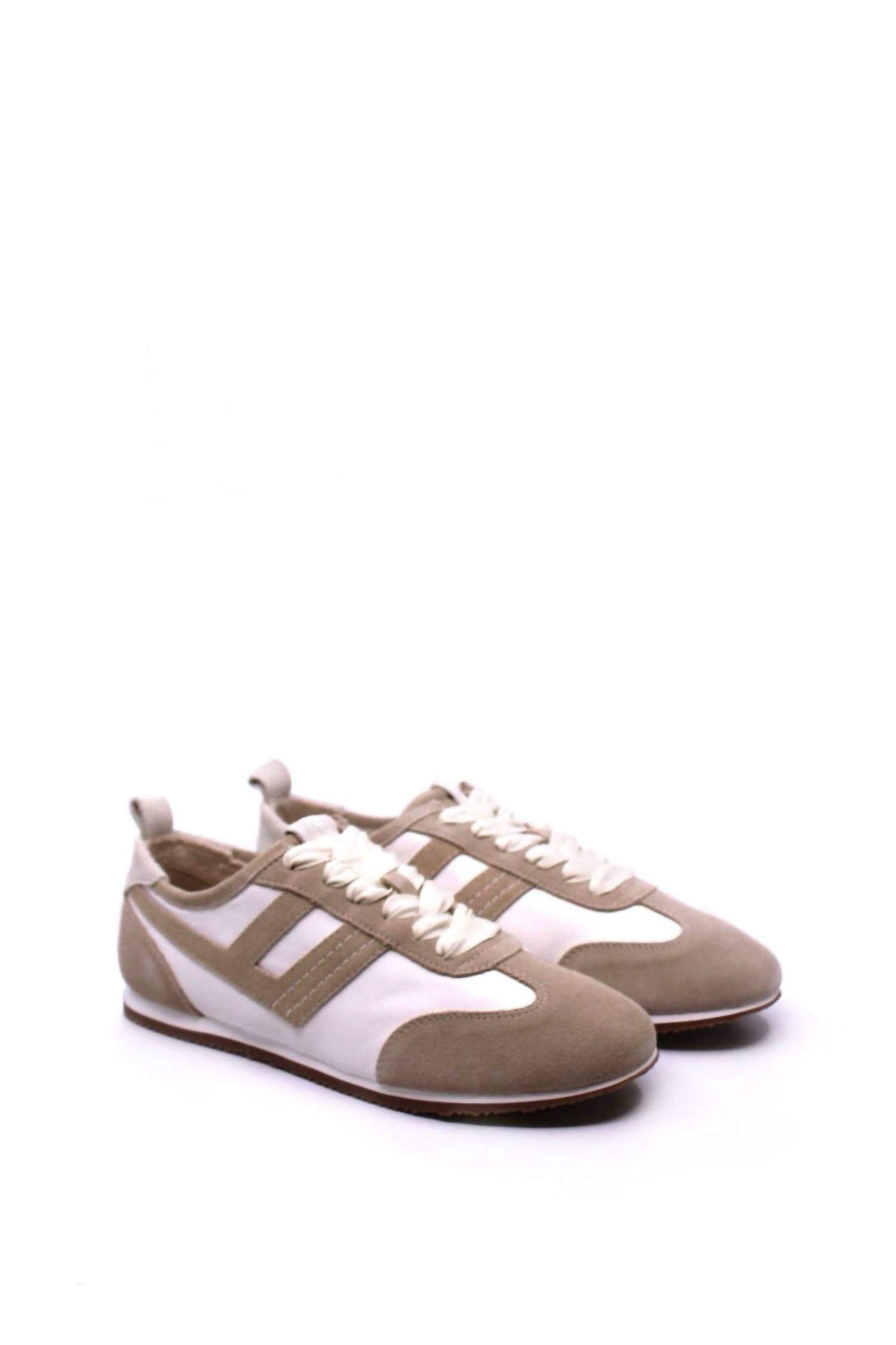 Workout in style with these adorable athletic sneakers. Chic fusion of athletic and feminine design. Low-top style features a suede composition with suede overlays and a textile base, enhanced by woven ribbon laces and a tongue loop showcasing a court motif. Sleek two-tone rubber outsole and pull tab effortlessly elevate any casual outfit. Perfect for fitness or workouts. Boast a flat heel under 1" for comfort, especially during the spring season.
