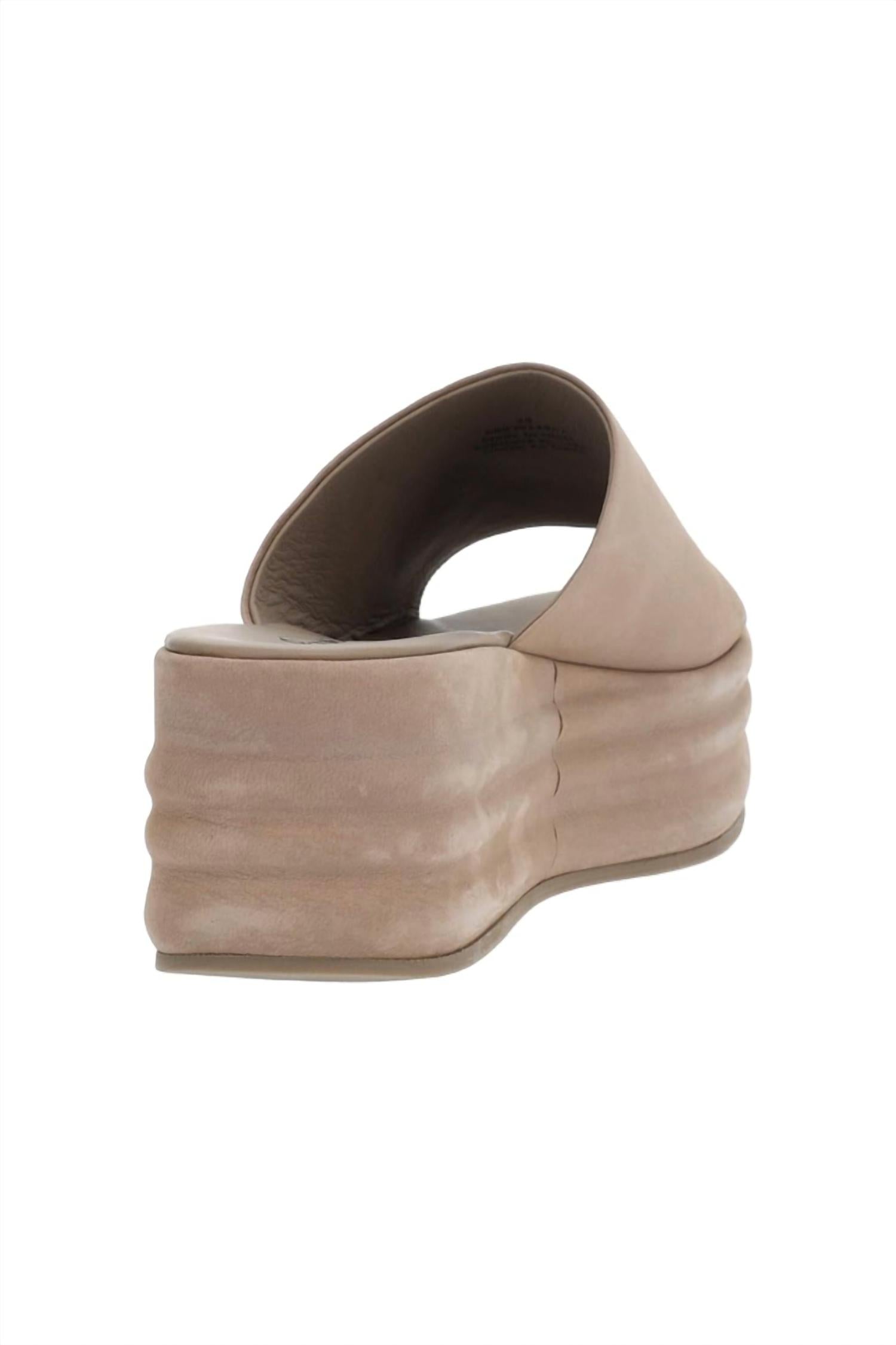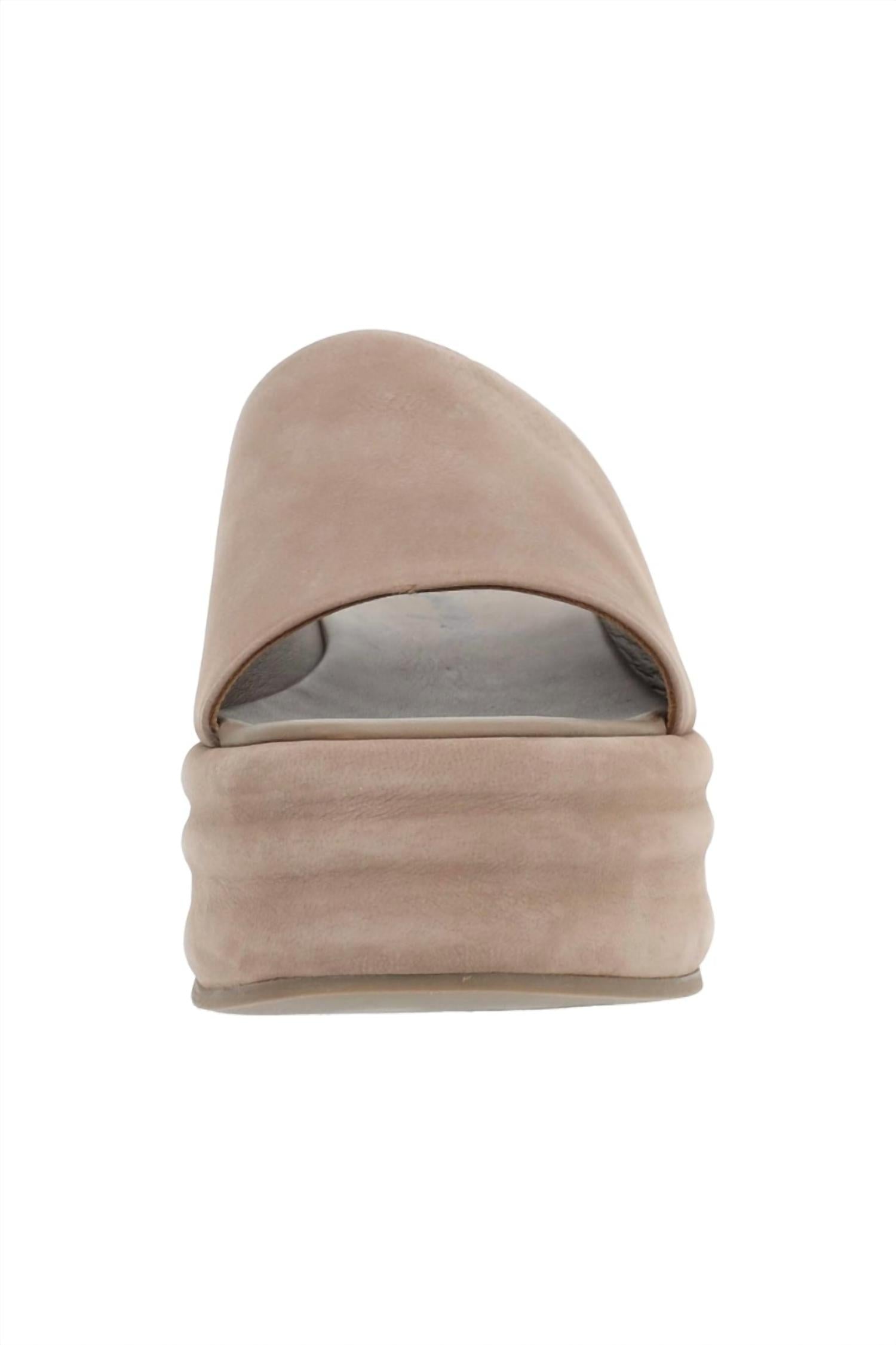 Flowy dresses, cropped pants, and even jumpsuits... this sandal works with them all! Embrace minimalist summer style with the Women's Harbor Flatform Sandal by Free People in Fawn Grey. These sandals boast an open-toe design and a mule-style with a textured platform heel, complemented by a wide leather strap for a chic, retro vibe. The cushioned insole ensures comfort with every step. Expertly crafted from premium materials, these lightweight sandals are perfect for vacations and everyday wear.