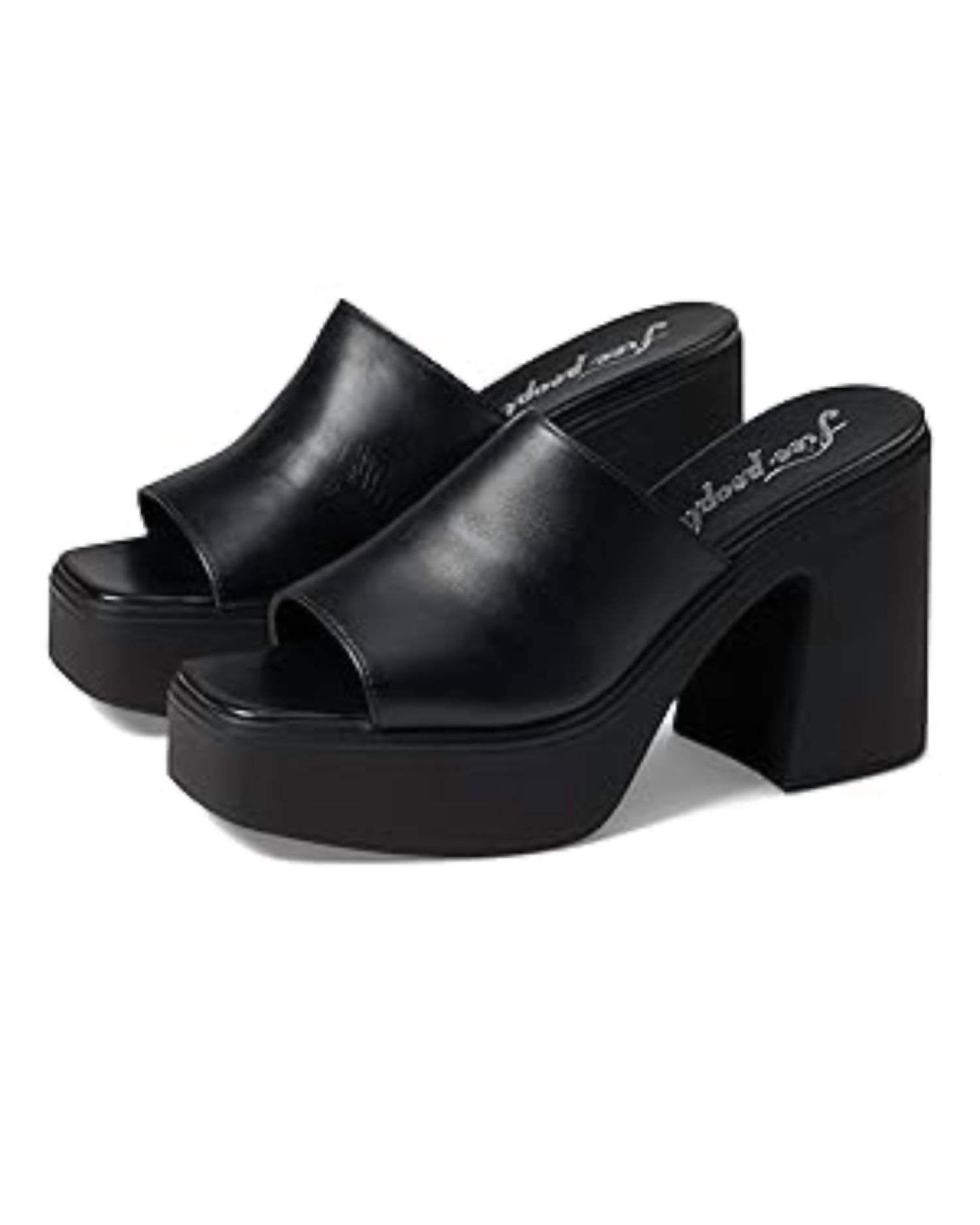 Don't be deceived, these heels are comfy as can be. Step into elegance with the Women's Zoe Platform Heels by Free People, crafted to elevate your style. These sleek black heels feature a slip-on design with a premium leather upper and a synthetic lining and insole for comfort. The open toe silhouette rests on a robust block heel with a sturdy rubber outsole, providing both style and support. With a heel height of 4 inches and a platform height of 1 3/4 inches, these heels are perfect for making a statement at summer dinner parties or any workwear occasion.