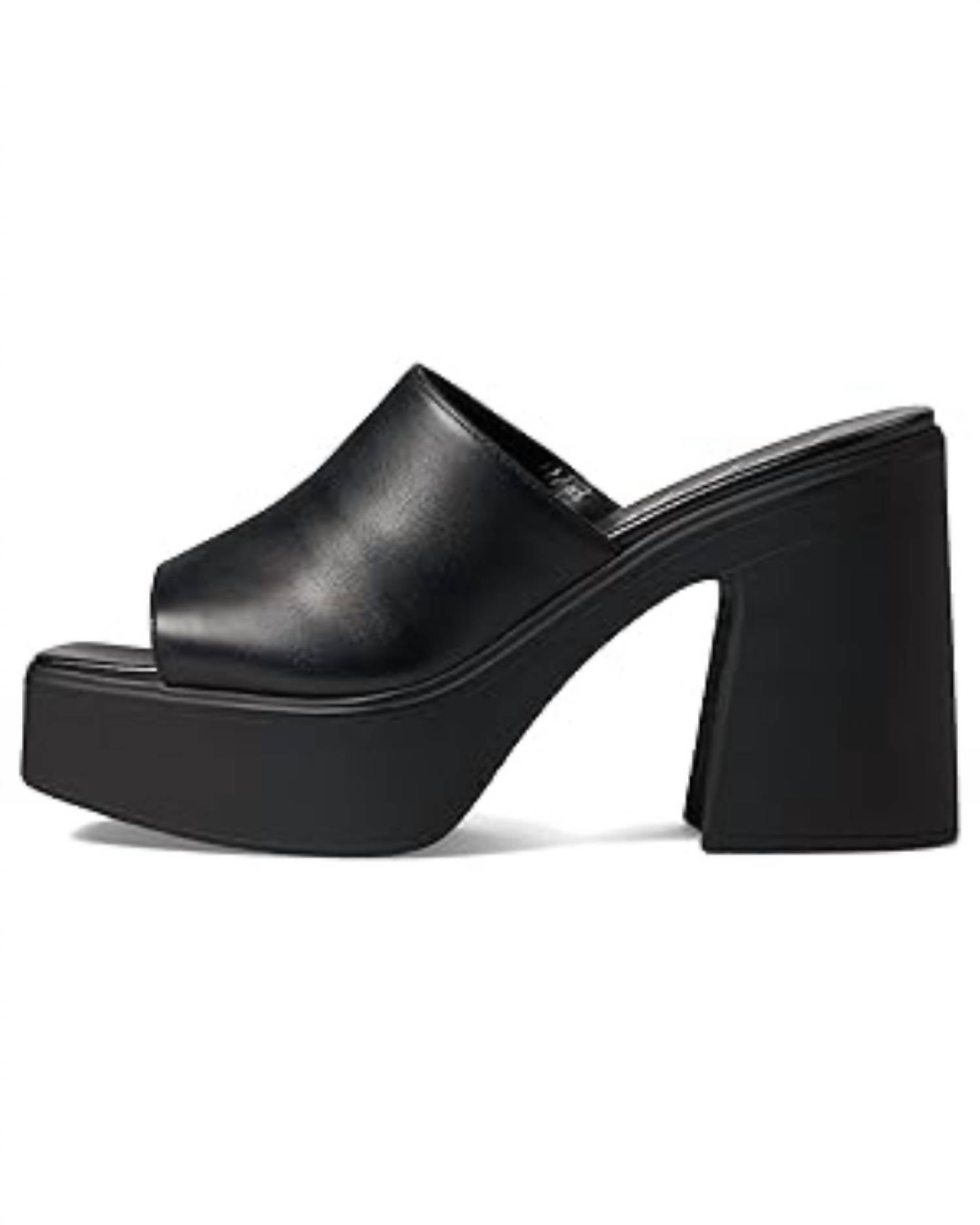 Step into elegance with the Women's Zoe Platform Heels by Free People, crafted to elevate your style. These sleek black heels feature a slip-on design with a premium leather upper and a synthetic lining and insole for comfort. The open toe silhouette rests on a robust block heel with a sturdy rubber outsole, providing both style and support. With a heel height of 4 inches and a platform height of 1 3/4 inches, these heels are perfect for making a statement at summer dinner parties or any workwear occasion.
