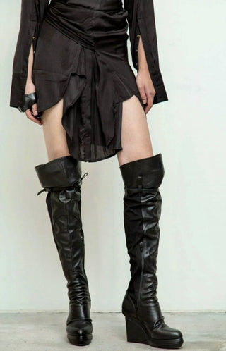Free People - Jedda Boot Over Knee Leather Fabric Wedge