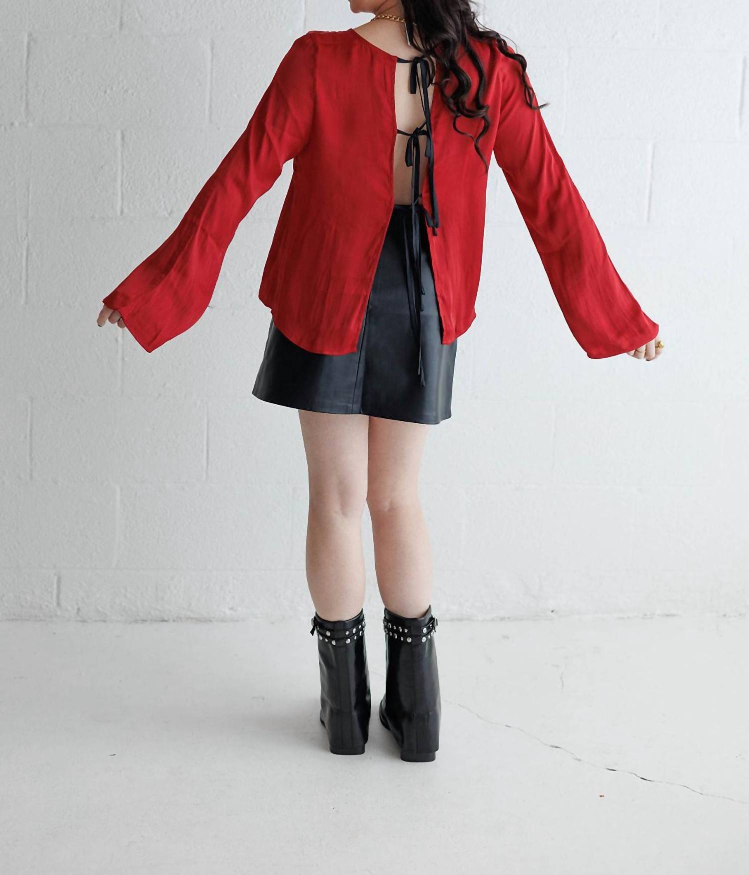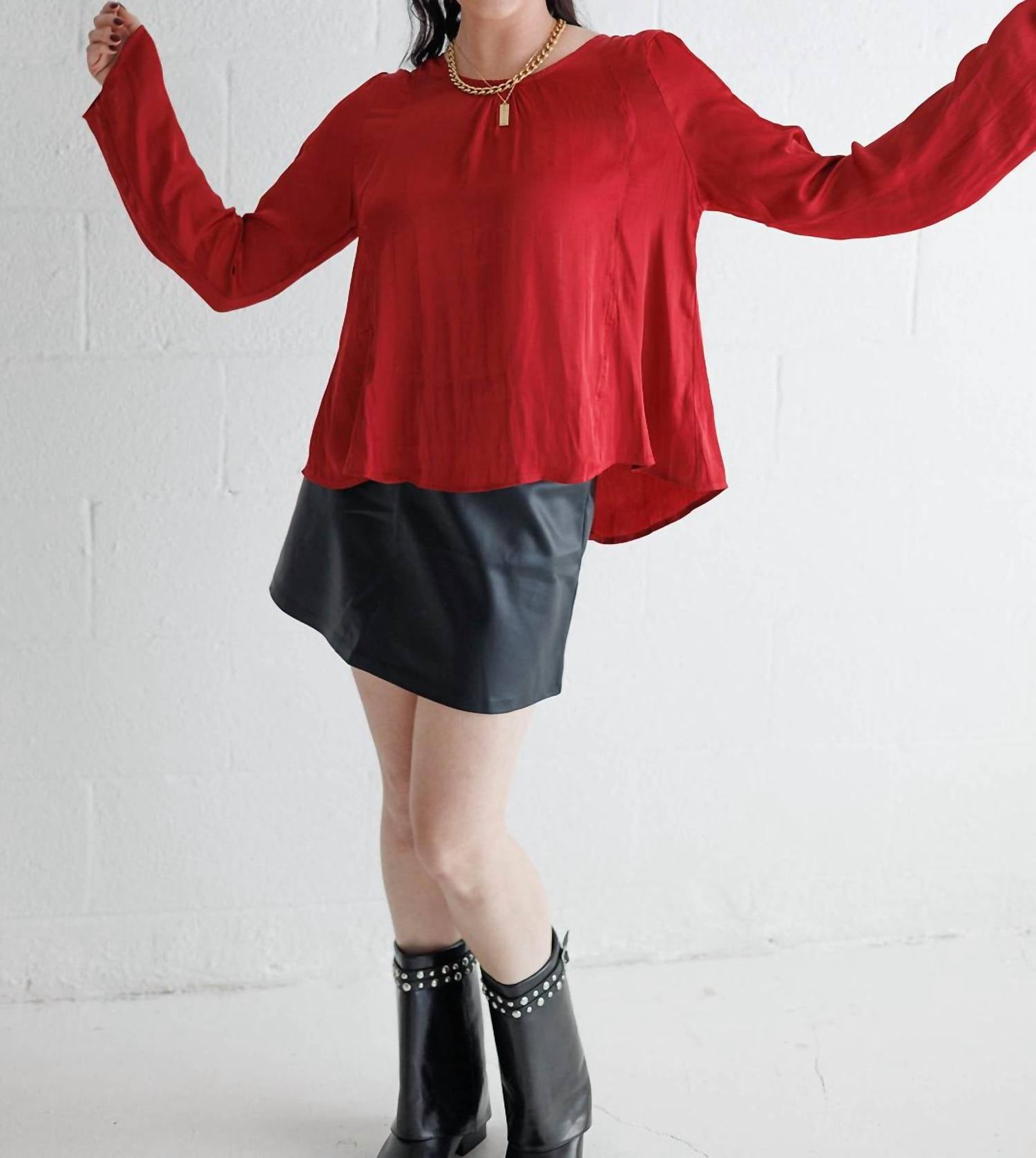 Introducing the Arabella Blouse by Free People, a perfect blend of simplicity and style. Crafted from luxurious satin, this blouse features a billowy, long-sleeve silhouette with a flattering scoop neckline. The contrast ties at the back and shirred details add an elegant touch. Its relaxed fit and classic cut make it a versatile choice for dressing up or down on any occasion.