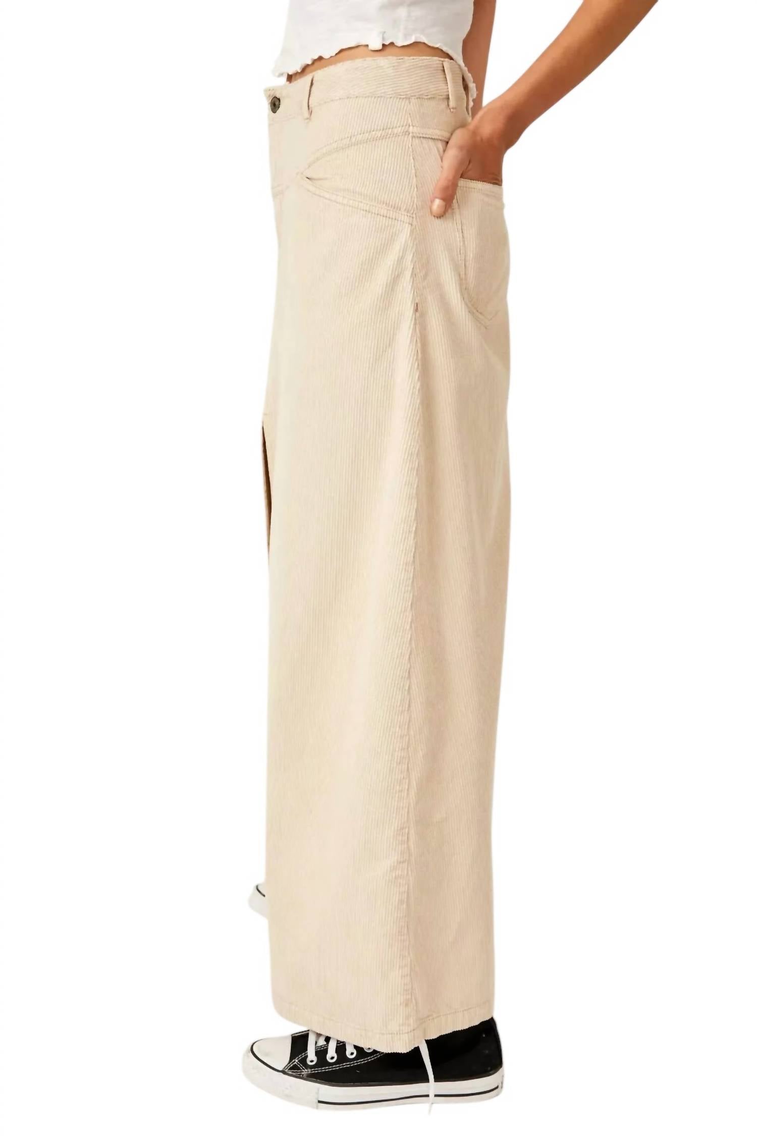 Elevate your wardrobe with the Come As You Are Cord Maxi Skirt by Free People, designed with a textured appeal in a charming beige hue. This women's maxi skirt is crafted from cotton, ensuring comfort and style in equal measure. Featuring convenient pockets and a button closure, it seamlessly combines practicality with fashion. Ideal for both casual and chic occasions, this skirt embodies the laid-back elegance that Free People is known for.