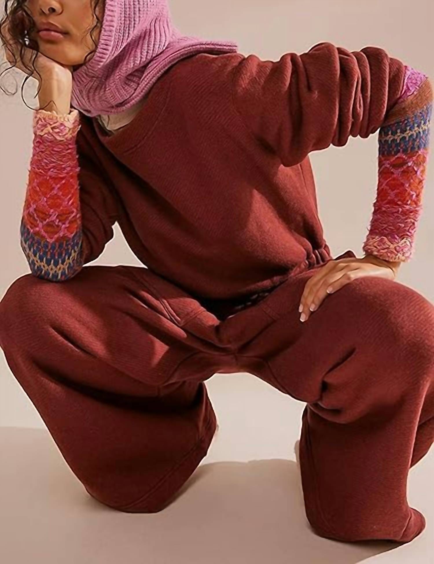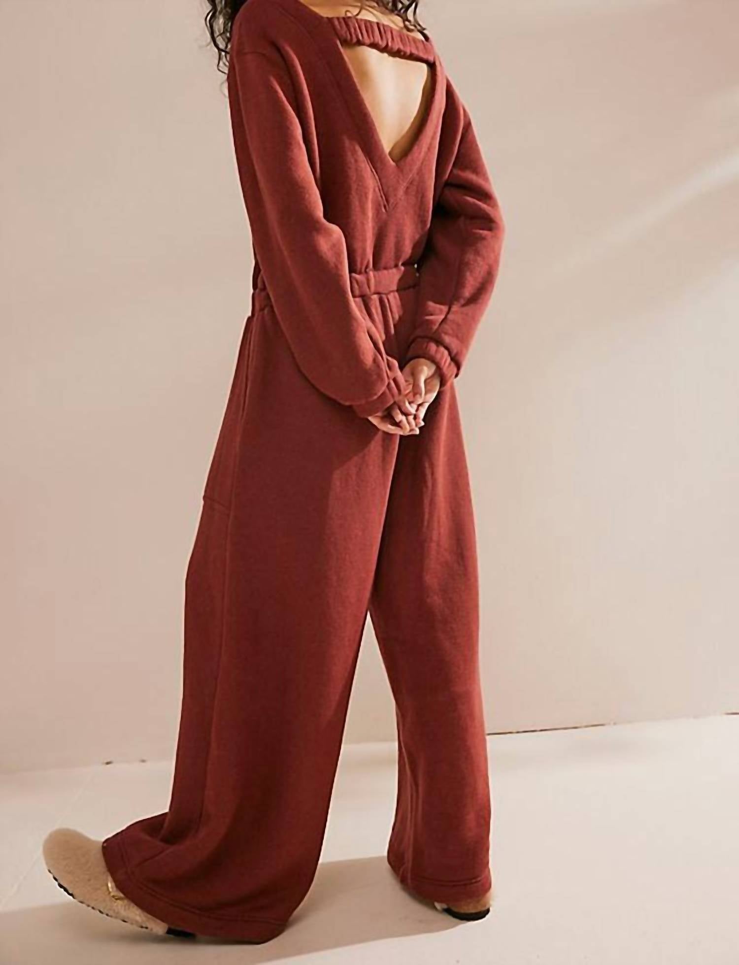 Throw it on and go! Introducing the Free People Darla One-Piece, a relaxed fit jumpsuit in a stunning Mahogany Wine/Bord hue. This solid-patterned piece is crafted from polyester and features a convenient pull-on closure. The wide-leg design is complemented by functional pockets for added practicality. Care for this women's jumpsuit with machine washing and tumble drying for ease.
