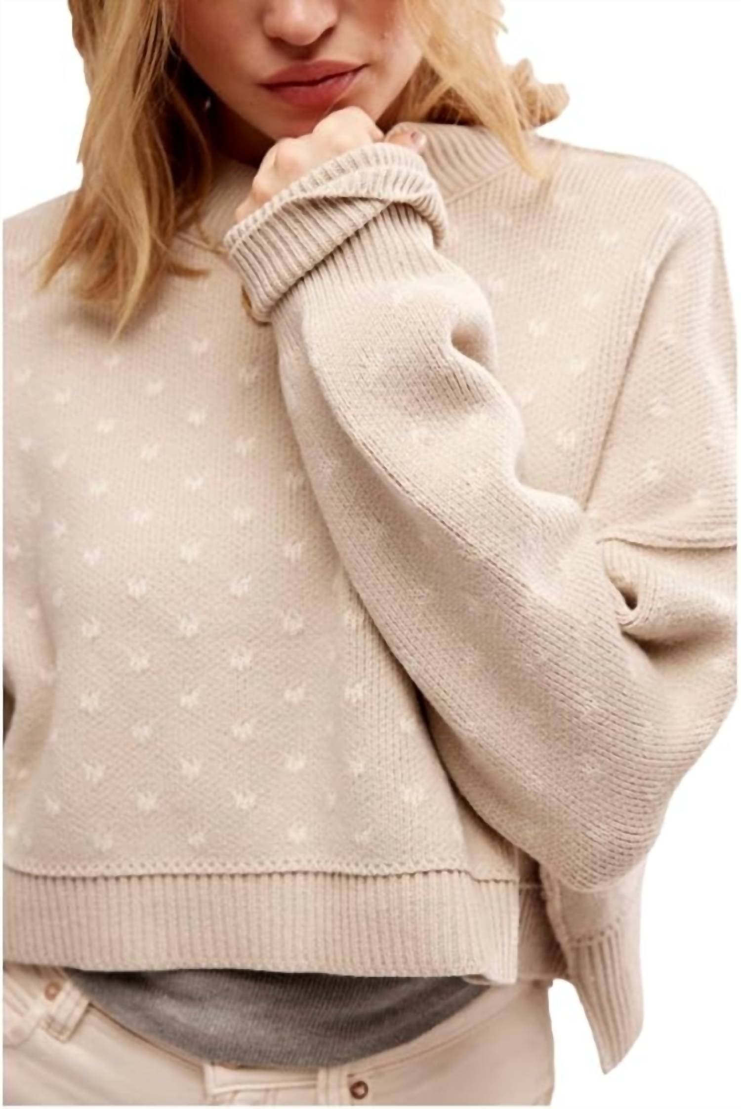 Experience the perfect blend of comfort and style with this trendy crew neck sweater, designed to effortlessly elevate your wardrobe. Pair it with your favorite denim and loafers for the perfect look. Elevate your wardrobe with the Easy Street Crop Sweater by Free People, featuring a slouchy, cropped fit in a charming Oatmeal Combo. This women's sweater boasts long dolman sleeves, a mock neckline, and dropped shoulders, all enhanced with printed details and ribbed knit trim. Crafted from a cotton blend, it's perfect for pairing with denim, trousers, or skirts for a versatile look. Closure: Pull on. Care: Machine wash cold.