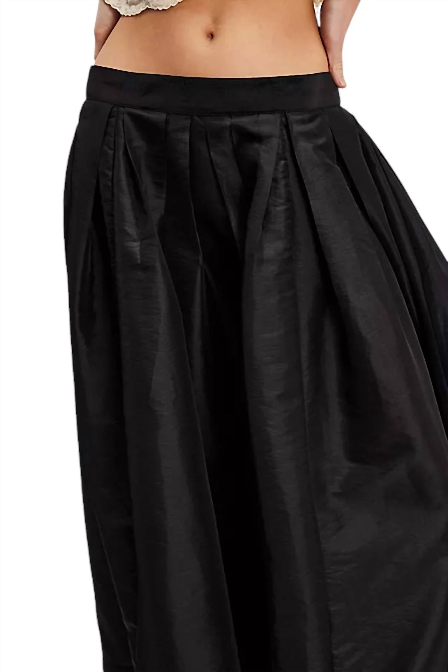 This stunning skirt features a high-rise, full A-line silhouette with a sheen finish. It includes pleating at the top, a finished hem, and an invisible zip closure. Made from 50% nylon and 50% polyester, it has a length of 35.75 inches (size small). Dry clean only. Imported.