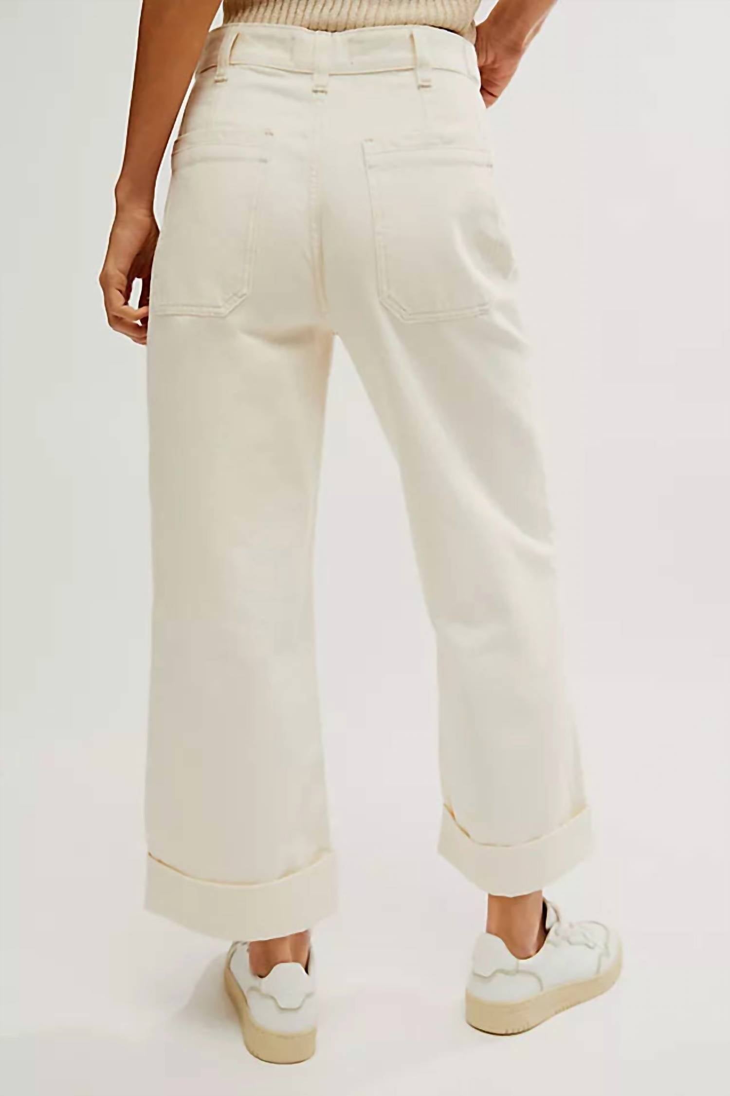 Just as cute as they are comfortable. Introducing the Flair Cuffed Jean by Free People, a staple for relaxed style with its flared leg and mid-rise fit. These eggshell jeans, crafted from 100% cotton, feature nonstretch denim for a classic feel. Practical details include front and back patch pockets, adjustable side button tabs, and a zip fly with button closure. With a 31 1/2" inseam, machine wash these imported jeans and tumble dry for easy care.