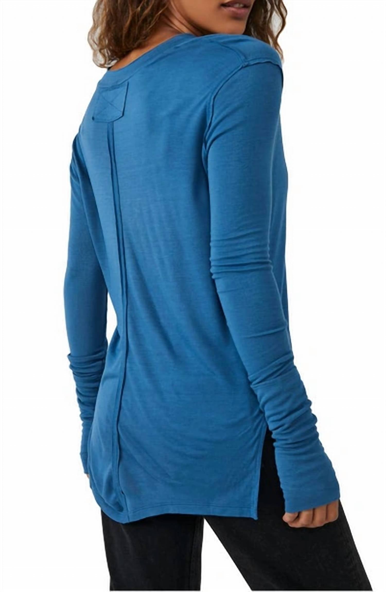 A long sleeve top you can wear with denim, skirts, well... just about anything! Designed with long sleeves and a flattering V-neckline. Solid, timeless tee effortlessly transitions from layering to standalone wear. Features a flowy hem with side slits for enhanced movement and a classic silhouette. Pull on closure. Machine wash.